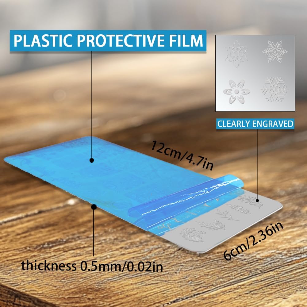 - Metal Material: Made of thick steel plate, not easy to fade, rust, steel plate surface with blue protective film to prevent scratches, clear lines, meticulous workmanship, different base colors present different effects. Size: 4.7×2.36inch