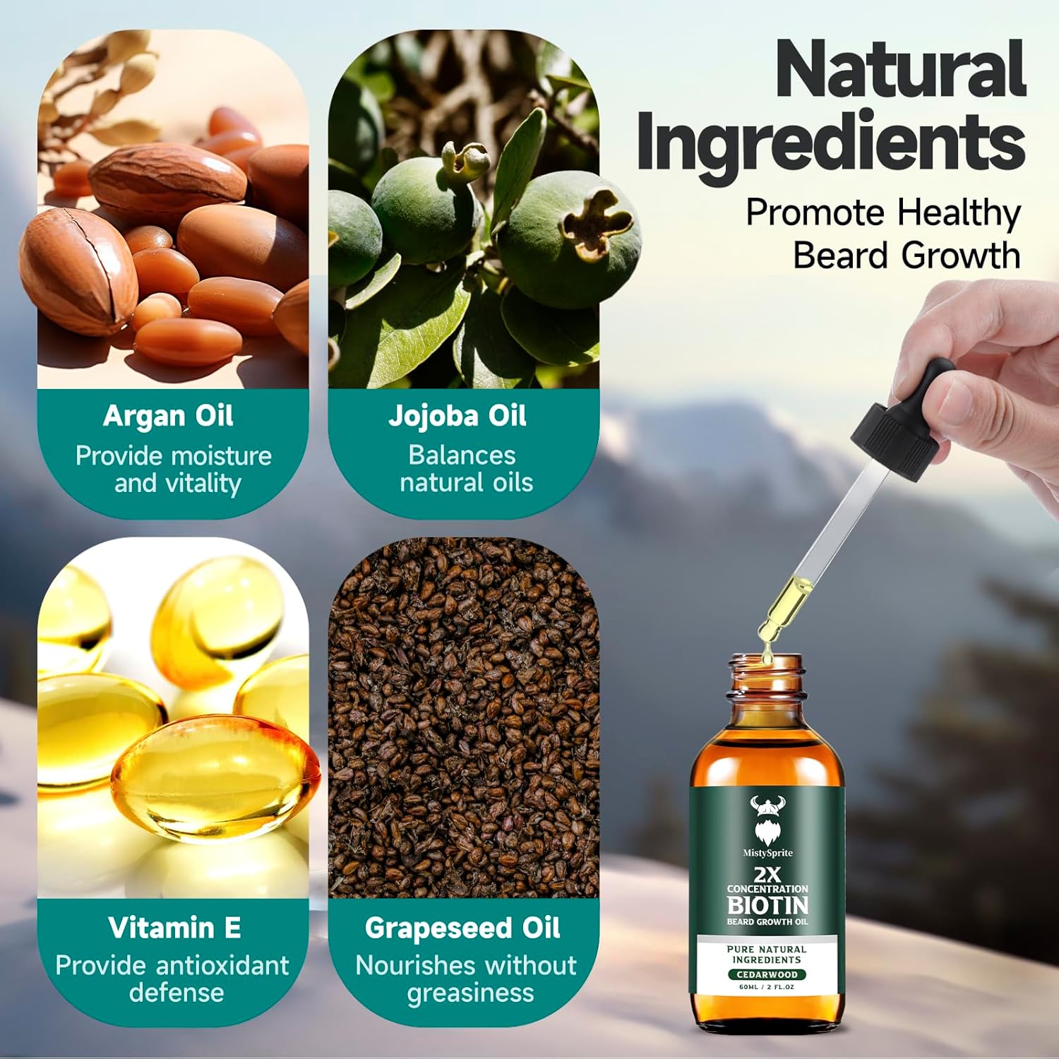 - Formulated for Beard Growth: Biotin in beard growth oil is one of our core ingredients and is essential for rejuvenating hair follicles and promoting beard growth. It strengthens your beard, reduces breakage, strengthens hair roots, thickens hair, promotes growth, eliminates itching, and softens the skin