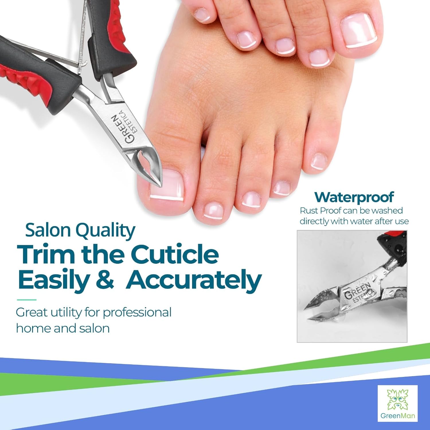 - [TOP NOTCH QUALITY FOR NAIL CARE] This Professional Cuticle Cutter with Non -Slip Grip handle is crafted from Premium Quality Surgical-Grade Stainless Steel makes it extremely Durable and Long lasting. Measurements: The cuticle nipper is 4.5” long, 3" wide and the Cutting blade is 0.25'' long.