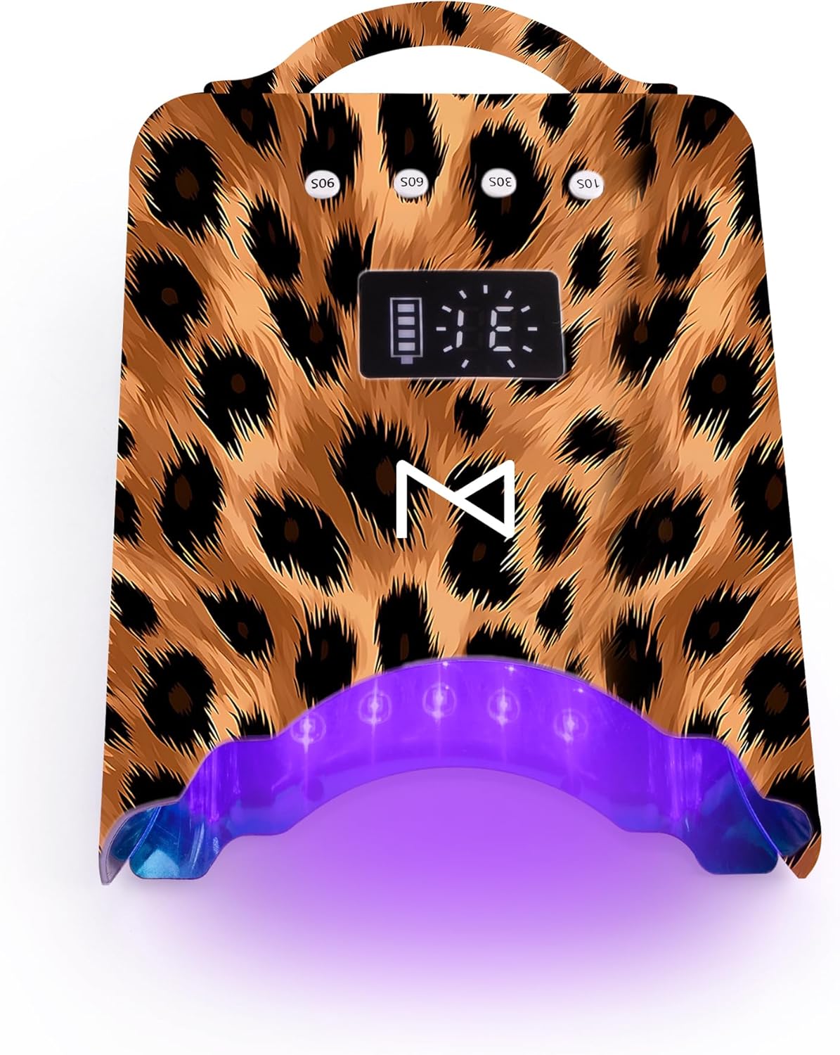 M - NEO Cordless & Rechargeable Nail Curing Lamp 78W with 4 LCD Time Display Timer, Auto Sensor, and Spacious Interior for All Hand Sizes and Nail Lengths (Leopard)