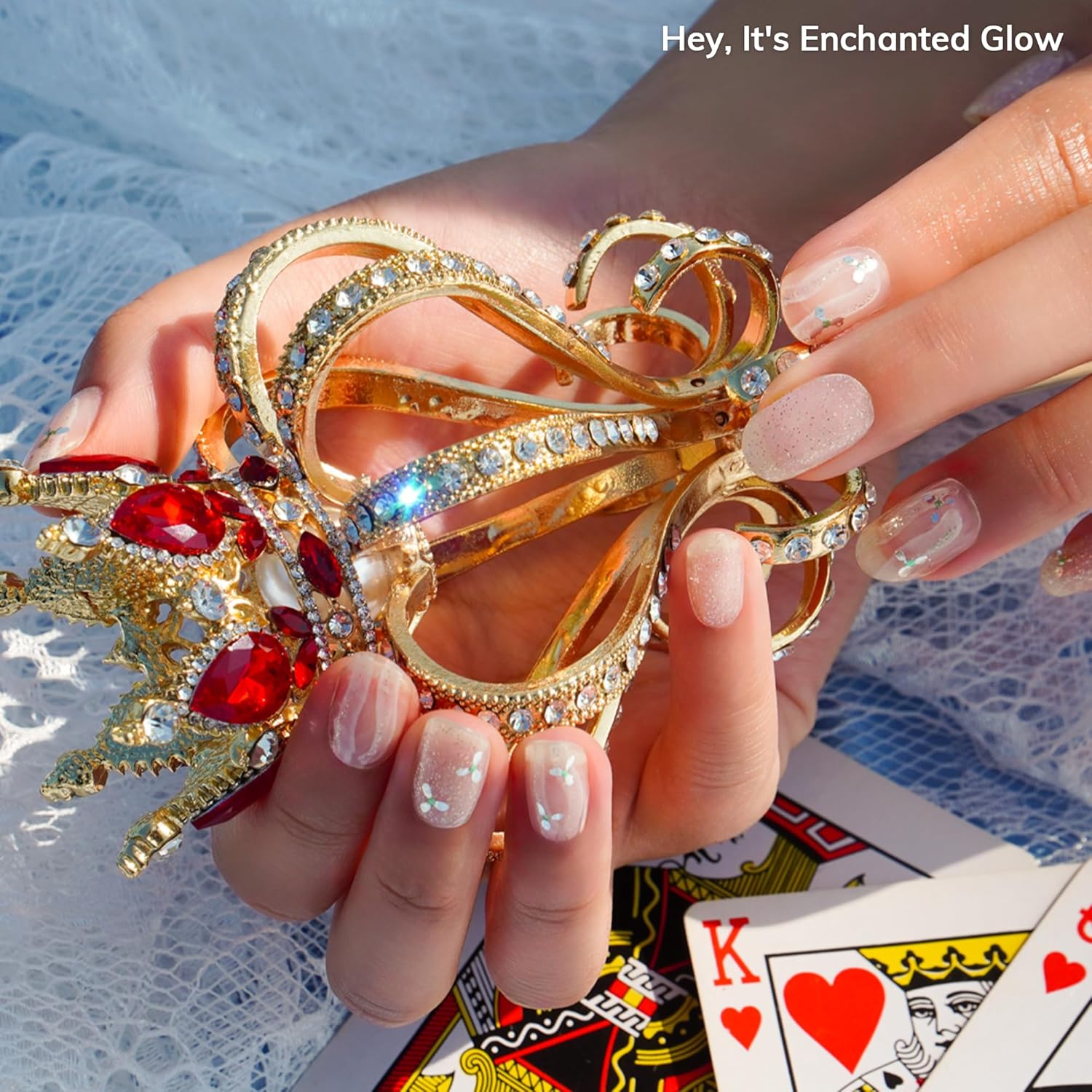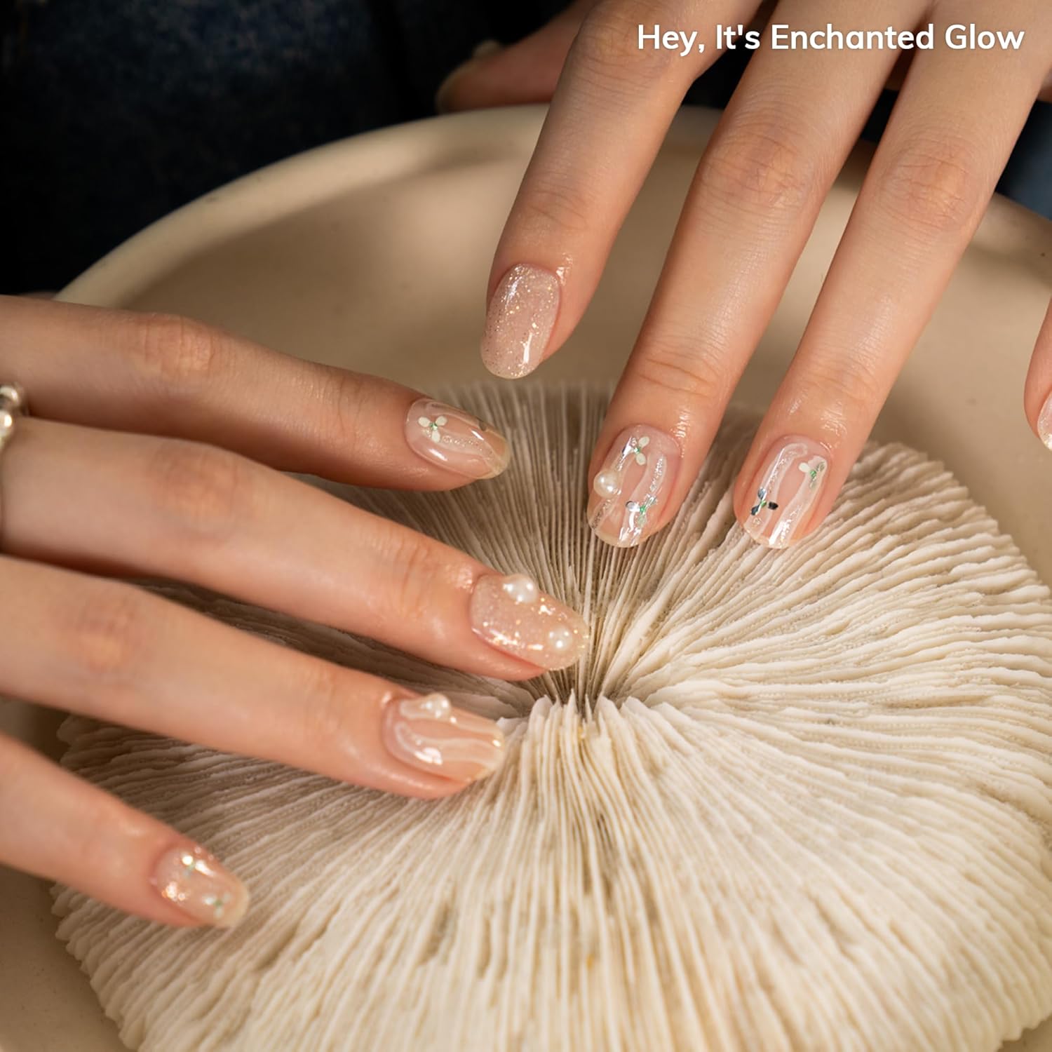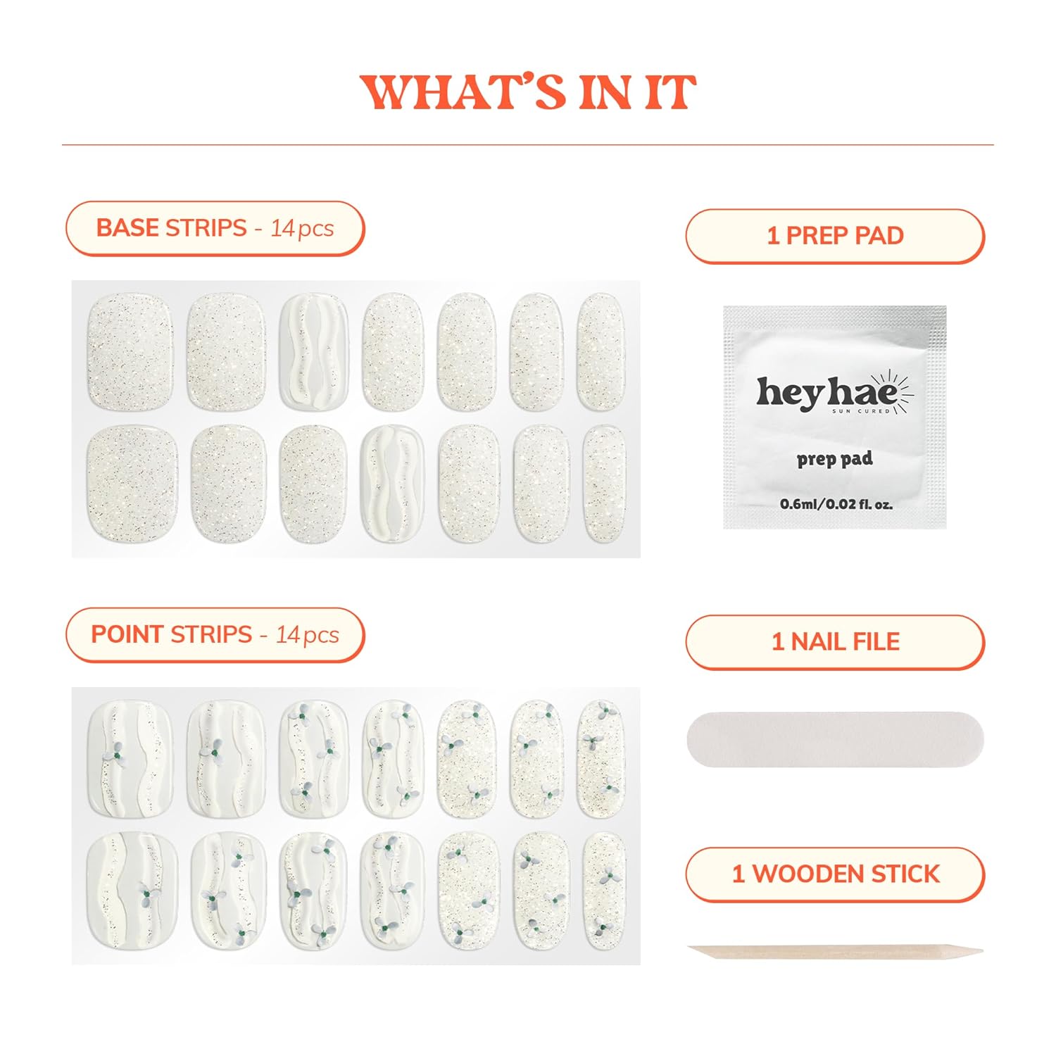 Semi Cured Gel Nail Strips | No LED Lamp Needed | Glitter, White | Easy Apply & Remove, Salon Quality Includes 28 Strips, 1 Prep Pads, Nail File & Wooden Stick - Hey, It's Enchanted Glow
