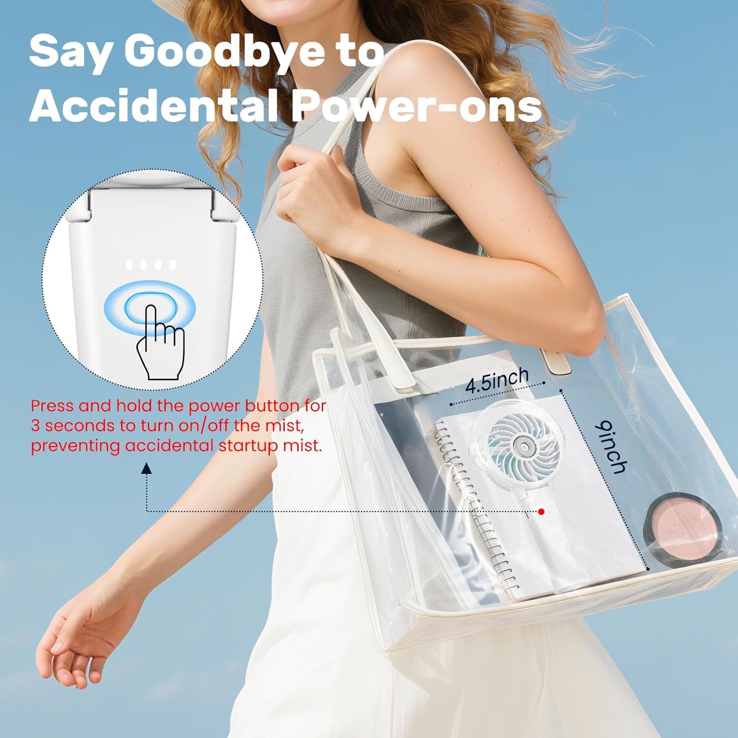 - Package List: Mist fan*1, 50ml Water Bottle*1,USB-C charging cable*1,User Manual*1,Hand Strap*1,Neck Strap*1.