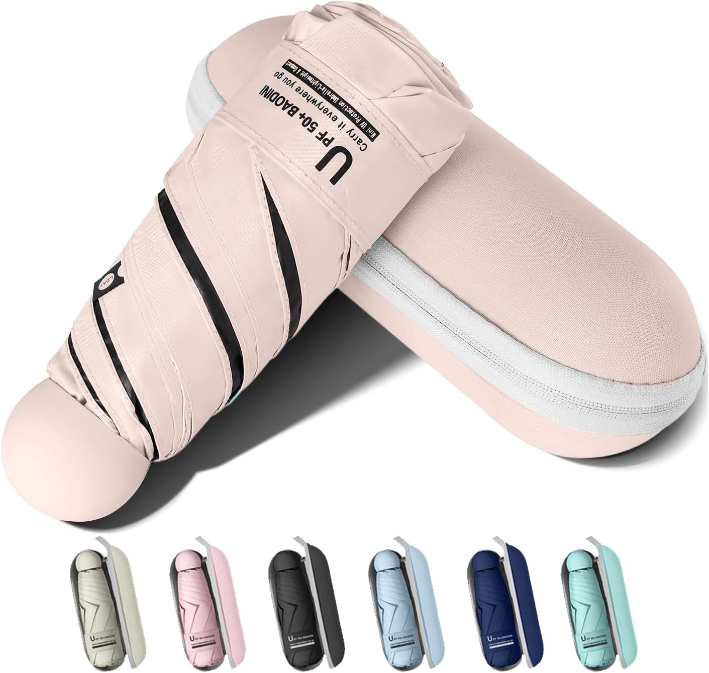 BAODINI Travel Essentials Mini Umbrella for Purse With Case Small Compact UV Sun Protection Lightweight Tiny Pocket Manual Open Close Umbrella for Women Kids and Men Fit Purse Backpack
