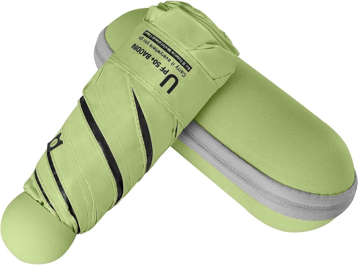 BAODINI Travel Essentials Mini Umbrella for Purse With Case Small Compact UV Sun Protection Lightweight Tiny Pocket Manual Open Close Umbrella for Women Kids and Men Fit Purse Backpack
