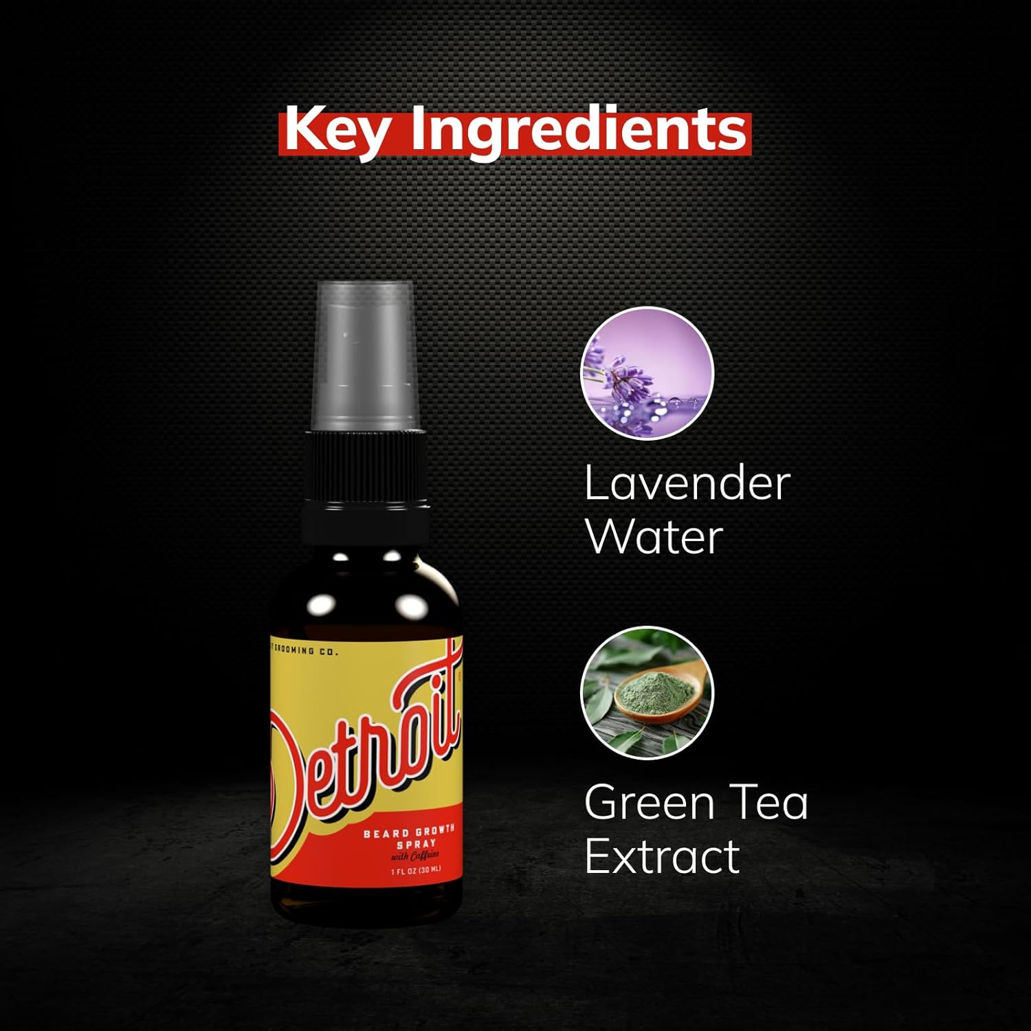 Detroit Grooming Co. Beard Growth Spray | Boost Beard Growth with Biotin, B7 & Caffeine | Hydrating Beard Care with Lavender Water, Green Tea & Glycerin | 1oz Bottles (1-pack)