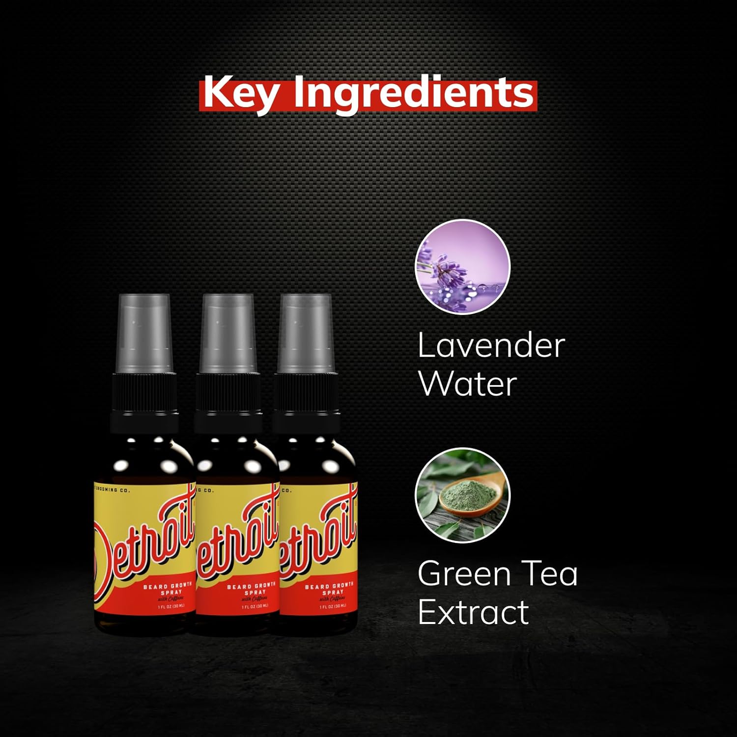 Detroit Grooming Co. Beard Growth Spray | Boost Beard Growth with Biotin, B7 & Caffeine | Hydrating Beard Care with Lavender Water, Green Tea & Glycerin | 1oz Bottles (3-pack)