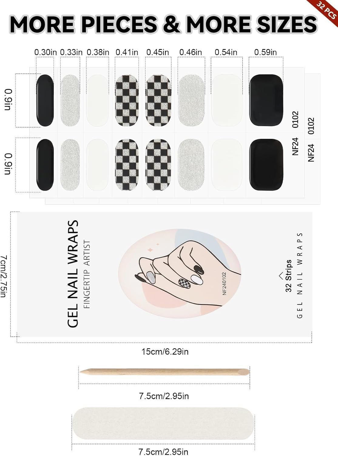 32PCS Semi-Cured Gel Nail Strips EBANKU Nail Polish Stickers Long-Lasting Semi-Cured Gel Nail Wraps Full Nail Polish Wraps Shiny Nail Decors Gel Nail Art Stickers UV/LED Lamp Required (Black Plaid)