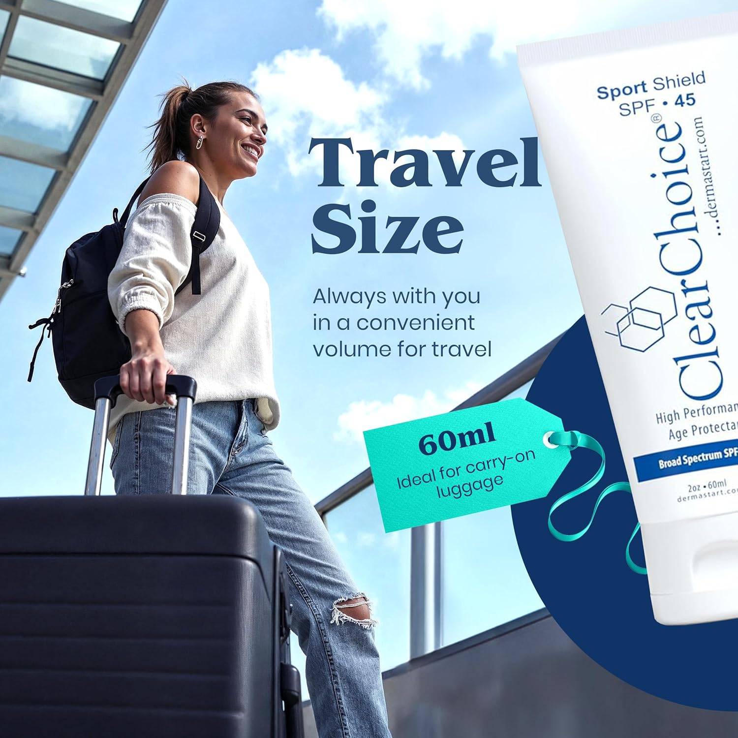 Clear Choice Travel Size Sunscreen for Face SPF 45, Mineral Oil Free Sunblock & Light Moisturizer with Zinc Oxide, Reef-Safe, Broad Spectrum, No White Cast, Dermatologist Recommended 2oz