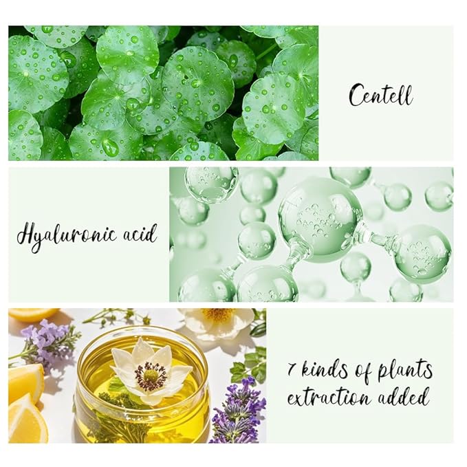 - KEY NATURAL INGREDIANTS : Added Centella sinensis extract and 7 kinds of plant extracts containing patents, effectively help soothe skin, replenish moisture, calm red skin, achieve internal and external healthy strong face skin.
