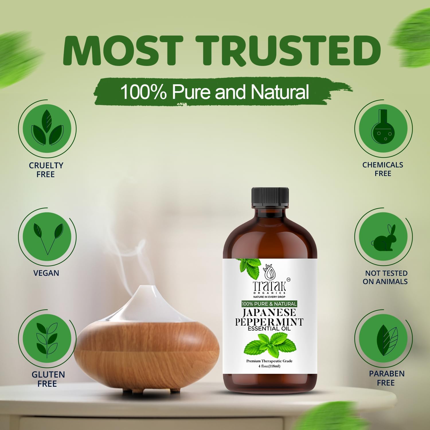 - BLISSFUL AROMA JOURNEY: Immerse yourself in the unparalleled purity of Tratak Japanese Peppermint Essential Oils, meticulously sourced and extracted solely from premium botanicals, untainted by any additives or fillers.