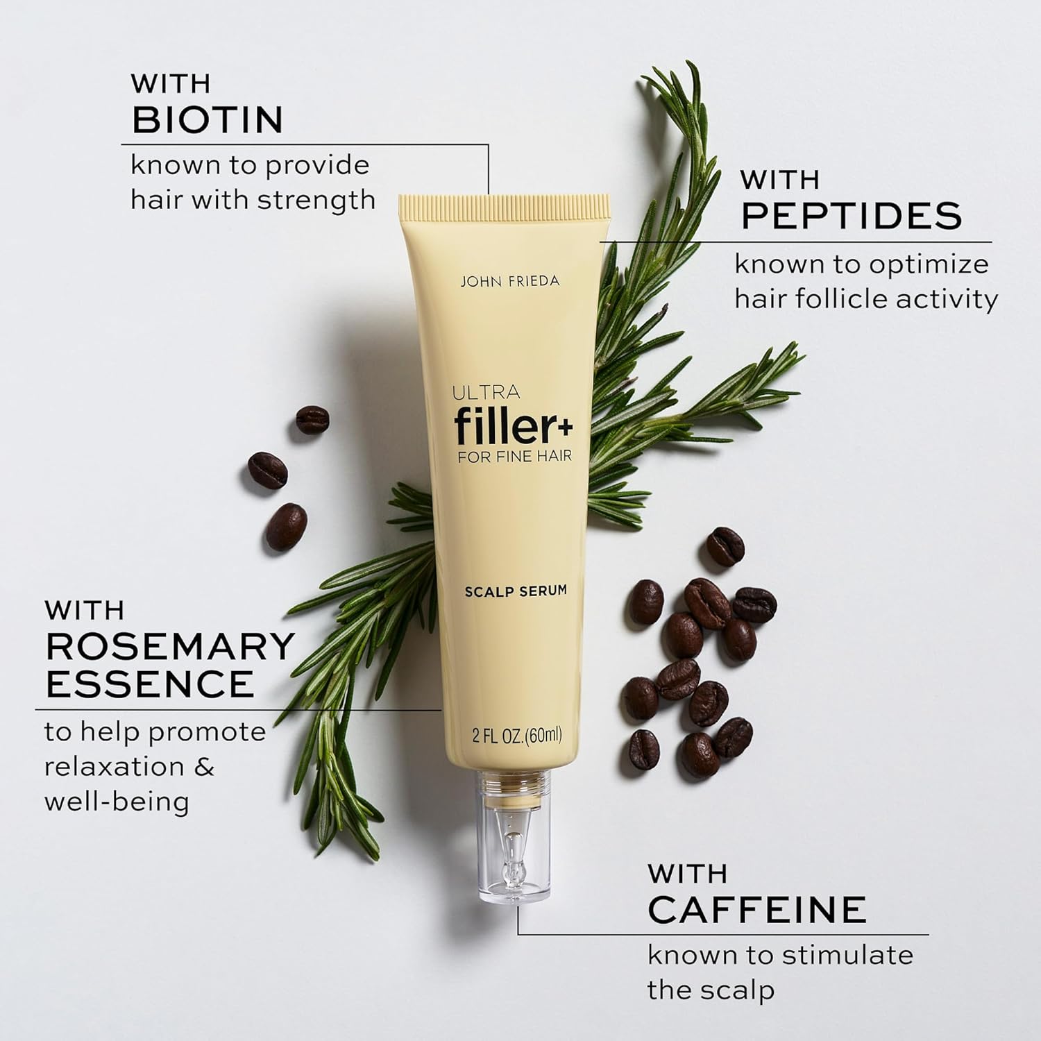 - SCALP SERUM FOR FULLER HAIR - Powered by biotin, peptides and caffeine, this hair serum balances the scalp and helps support the appearance of thicker, fuller hair