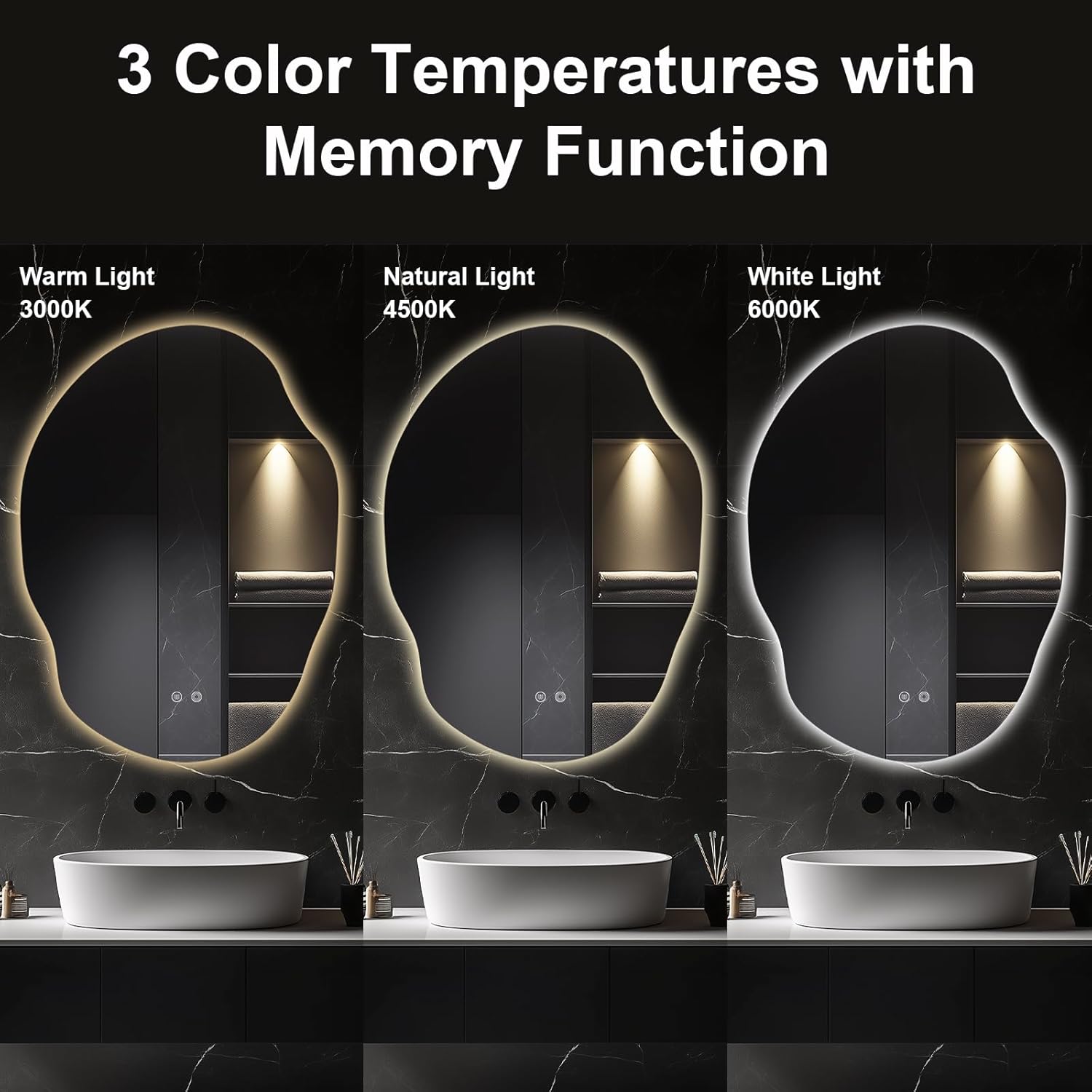 Asymmetrical LED Bathroom Mirror with Lights,Irregular Led Bathroom Vanity Mirror for Wall with Front and Backlit, Anti Fog, 3 Colors and Dimmable Light,[Horizontal/Vertical] 40" H x 30" W