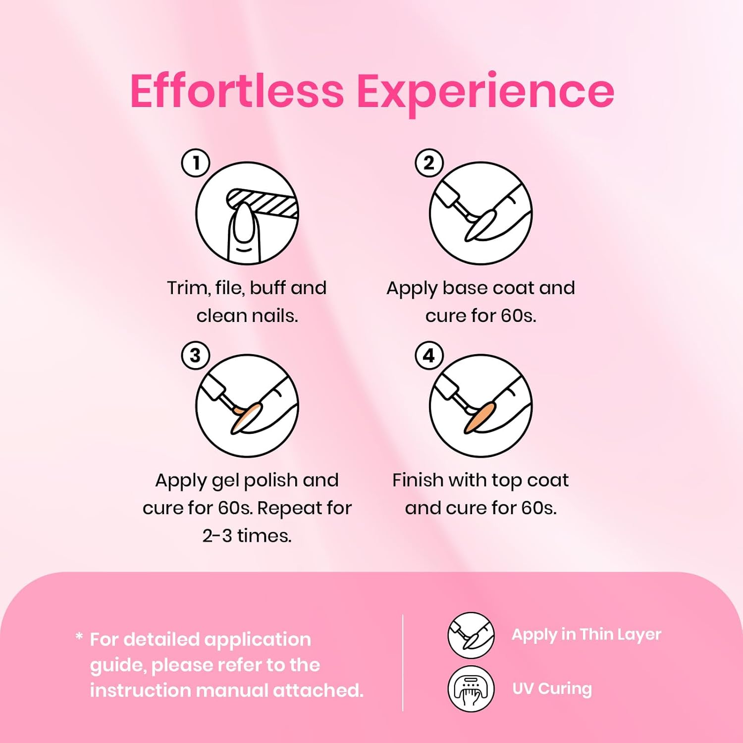 - Included Components : Base Coat, Top Coat, UV/LED Lamp