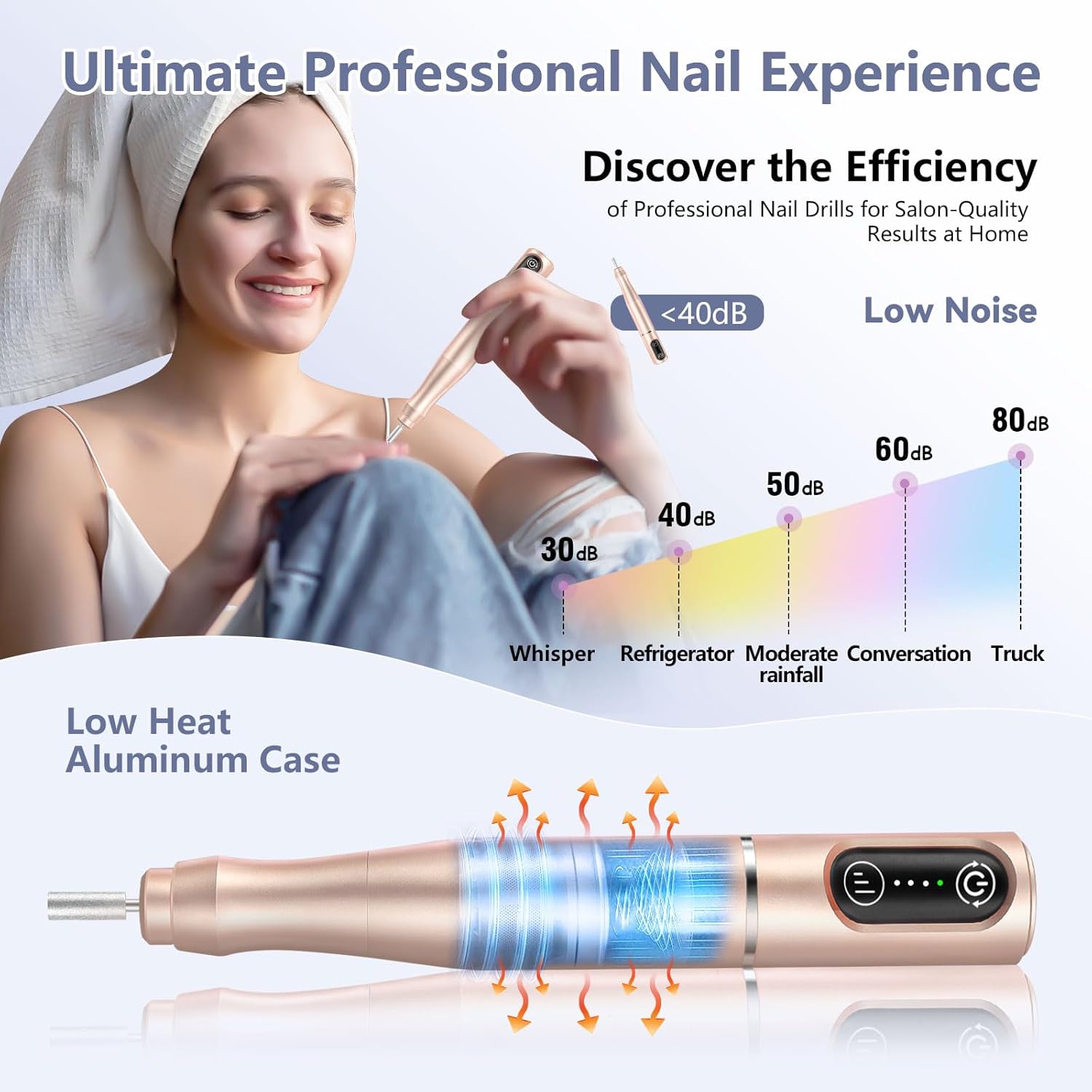 - Versatility and Customization: This cordless nail drill kit comes with a variety of attachments, including 11 different high-quality drill bits and 56 sanding bands, brush and dust-proof cap, catering to all your manicure and pedicure needs. Allows you to customize these tool to your preferences, meets all your need for buffering, grinding, sharpening, sanding, polishing acrylic and gel nails, removing extension gels, cuticle and dead skin. Making it suitable for both beginners and professionals