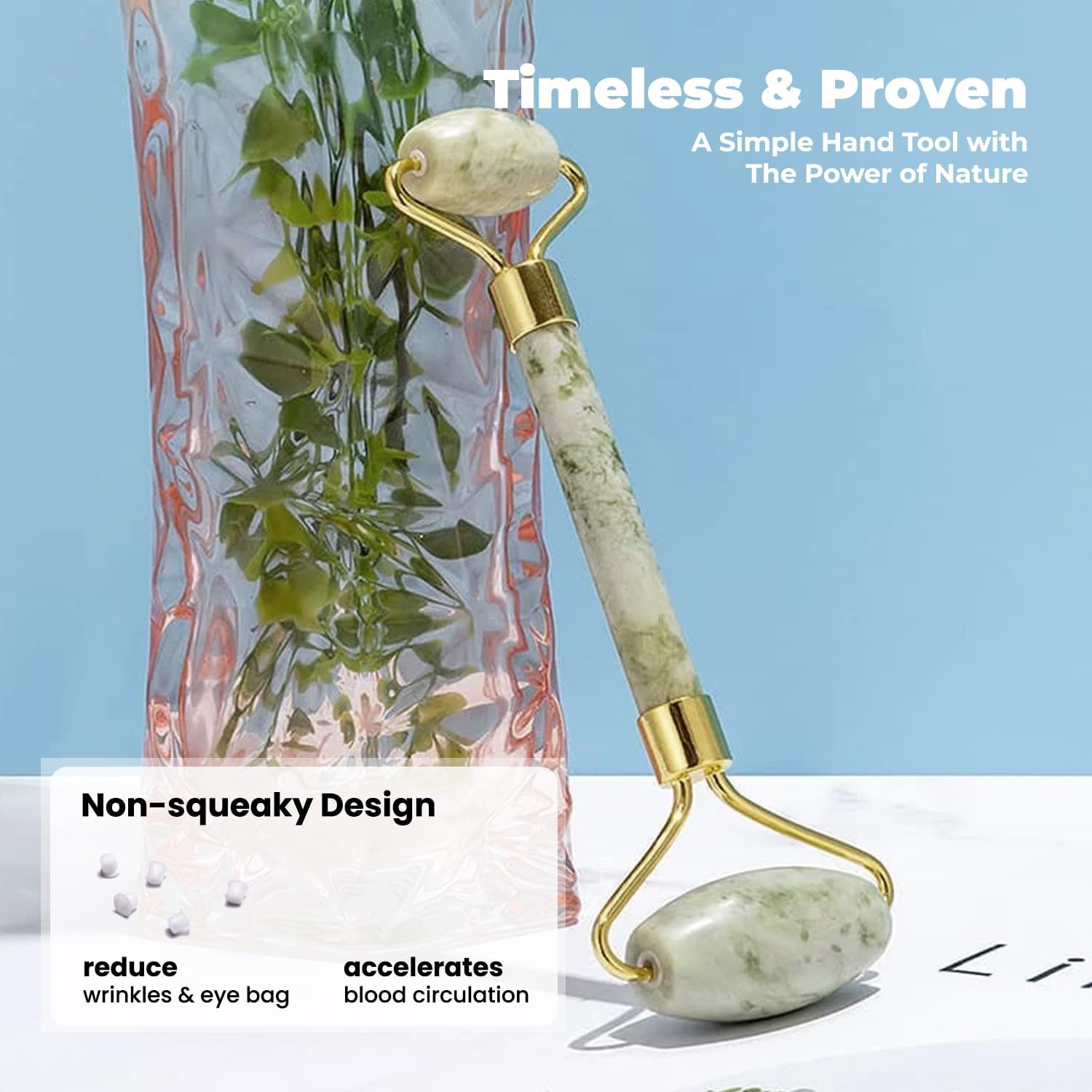- 2-in-1 Skincare Set – Includes a facial roller for gentle massage and a Gua Sha board for deeper contouring, improving skin elasticity and reducing the appearance of fine lines.