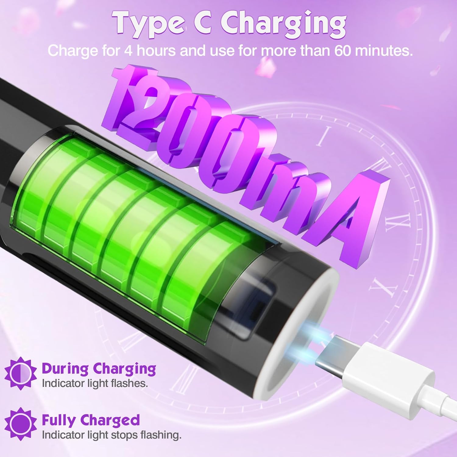- Rechargeable & Professional: This electric Foot callus remover features a 1000mAh rechargeable battery, up to 2 hours of continuous use on a single 1.5-hour USB-C charge, the device can still be used normally when charging. With its durable aluminum alloy construction, this cordless electric foot callus remover essential provides exceptional control, comfort, and reliability for beautifully groomed, healthy feet