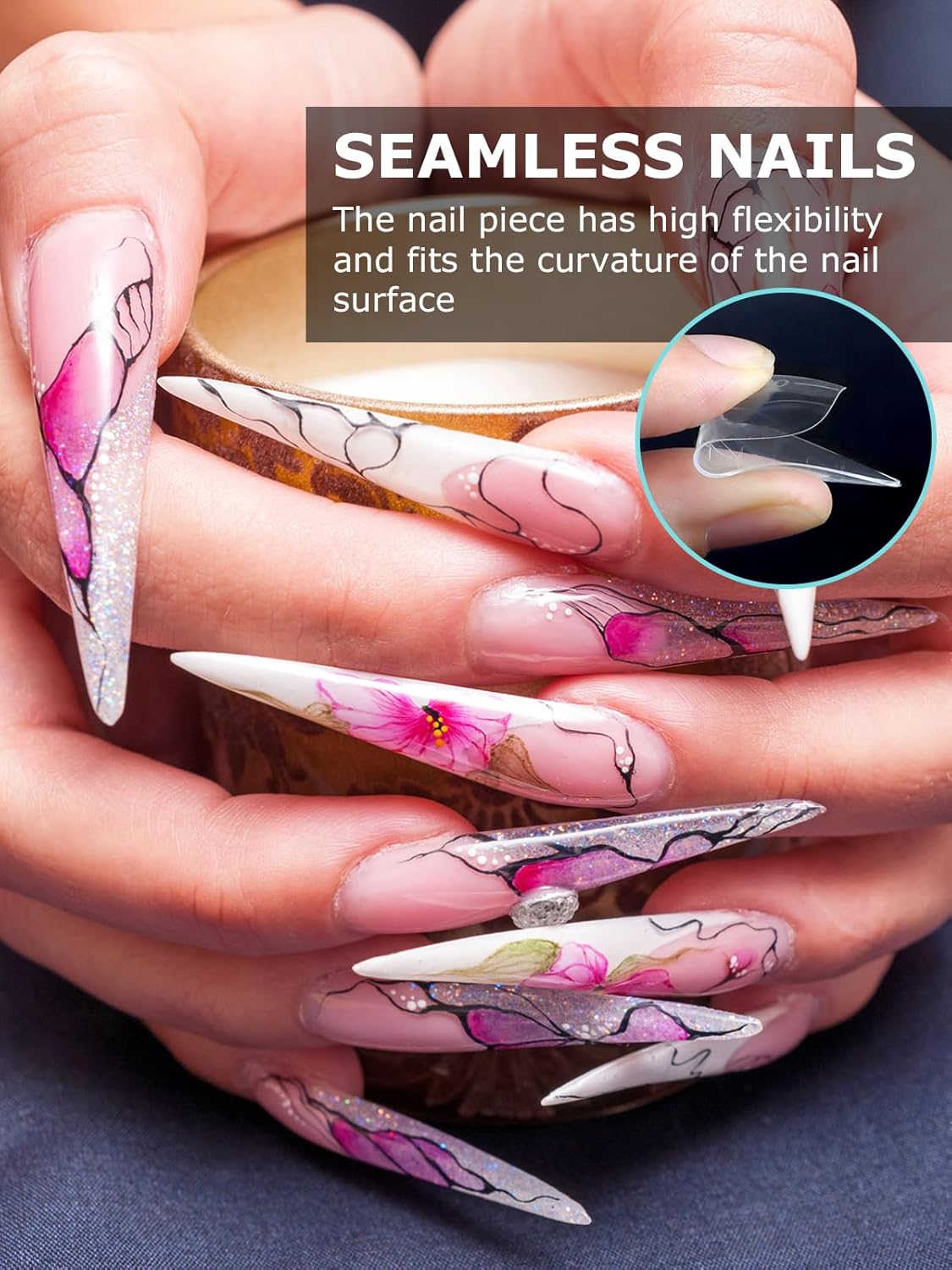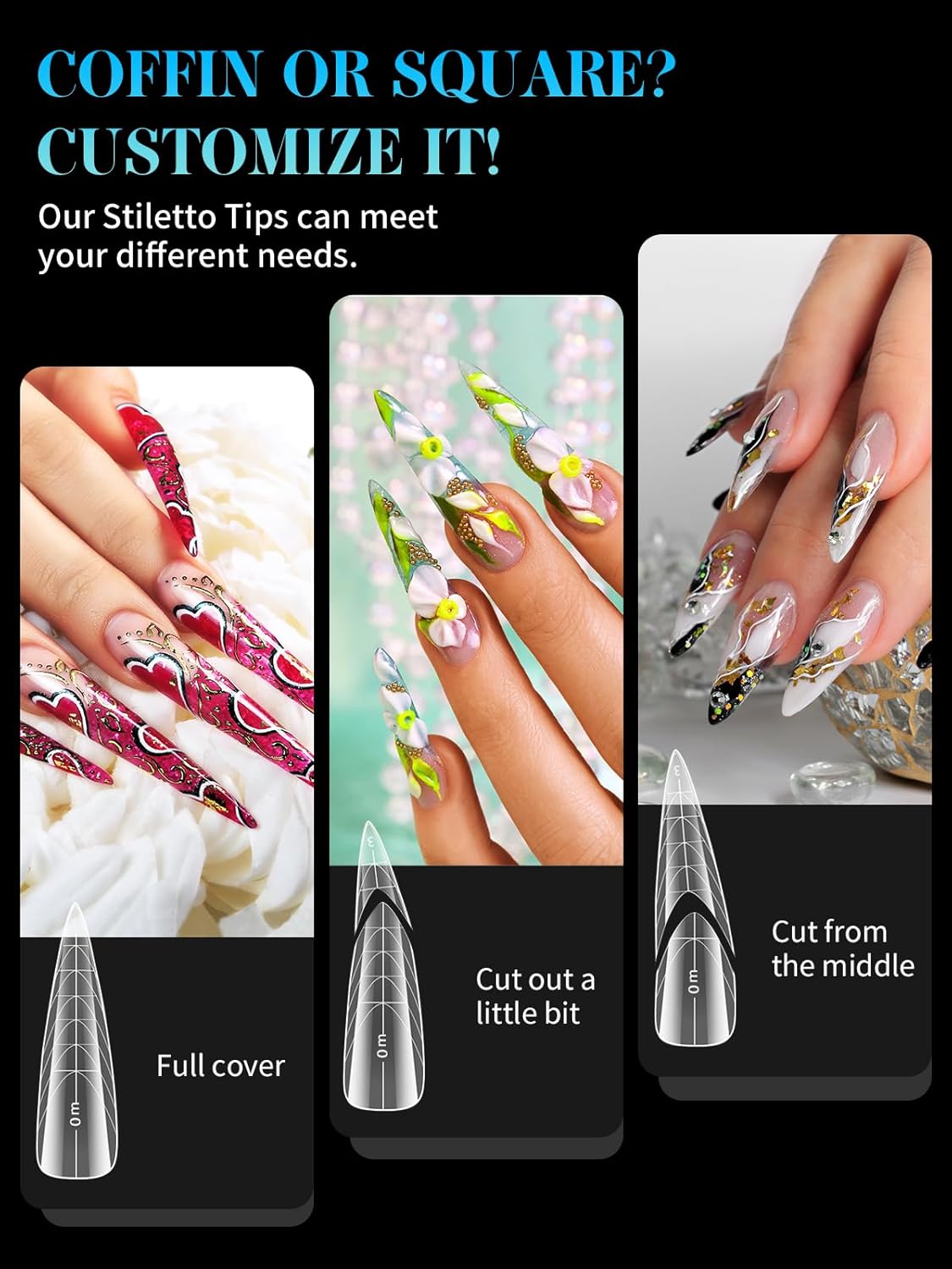 - 【Sturdy No C Curve Gel Nail Forms】Reusable extra long nail molds are made with high quality material, which is strong, tough, and reusable, providing you with a different lengths nail art experience that lasts.This artificial nails forms protective sleeve has a small handle on both sides, which is convenient for constructing gel nail extension nails, and will not stick to your hands, and can be easily removed after application.