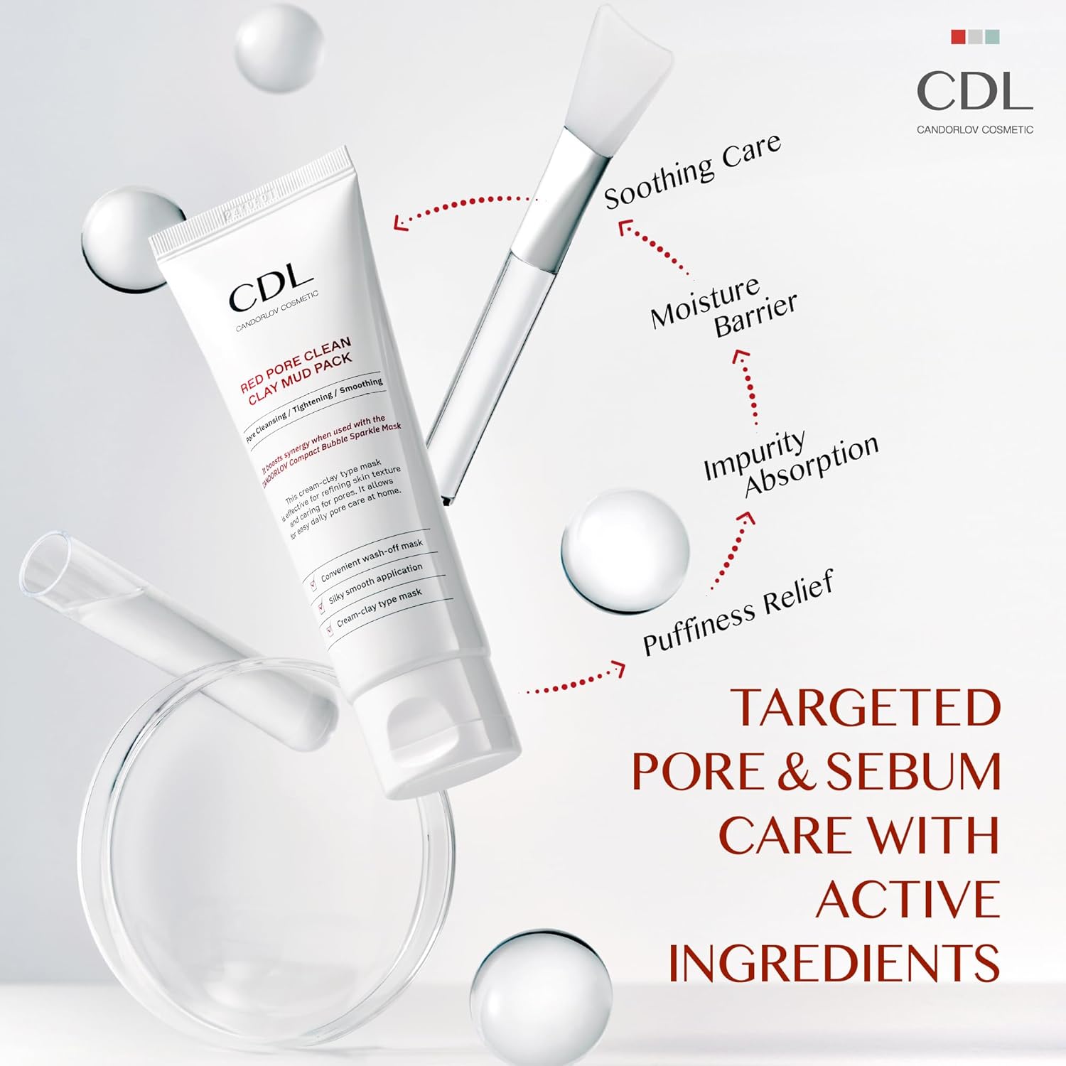 Red Mud Deep Pore Cleansing Facial Wash Off Mask for Impurities Sebum, For Senstive Skin, Soothing & Cooling Effect, Exforliating Dead Skin Cells, Korean Skin Care, 2.7 oz