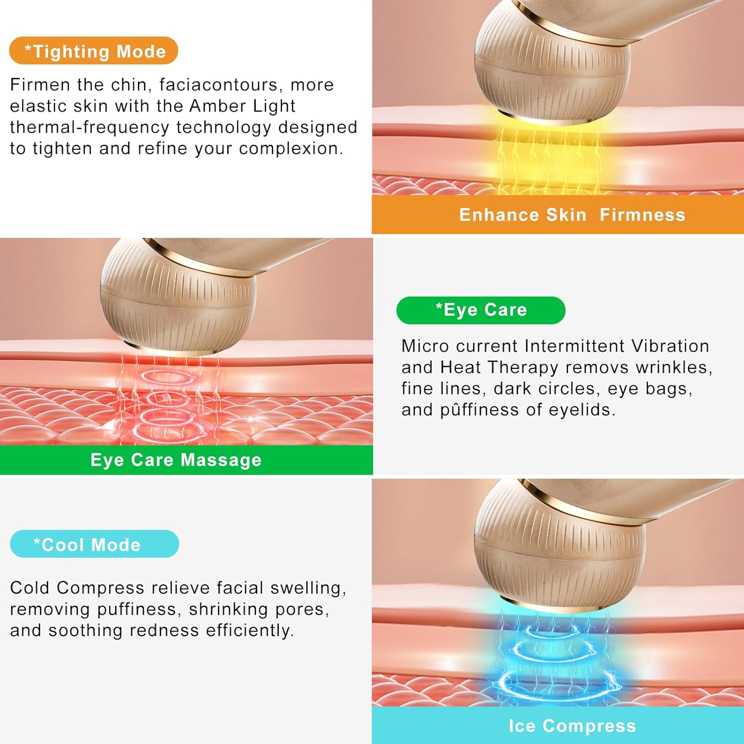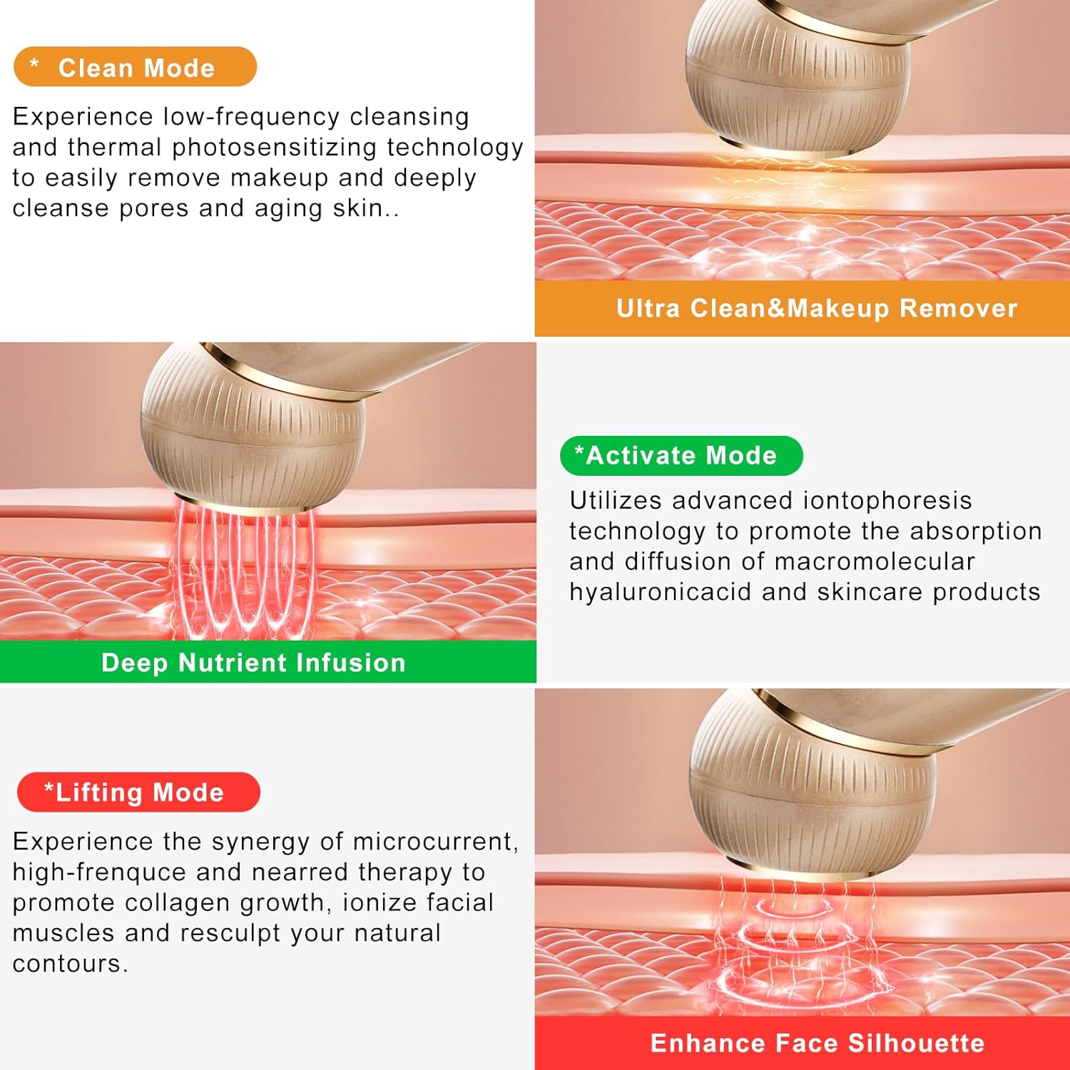 - 【Spa-Level Hydration & Lifting System:】Dynamic Microcurrent + Red Light Fusion – Morning: Use cooling blue light (4°C) to depuff eyes & shrink pores Night: Activate RF+red light combo for overnight collagen renewal Pre-Event: 5-minute microcurrent lift for instant V-face effect