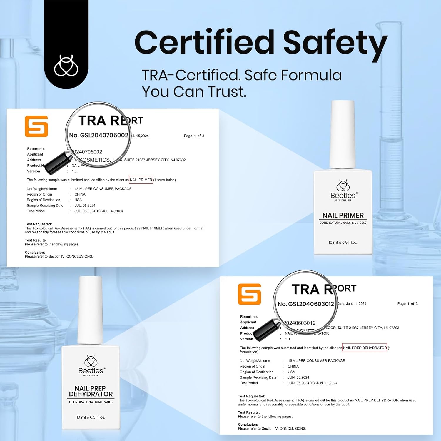 - 【Warm Note】:Beetles Gel Nail Glue Nail Dehydrator Primer Set is professionally formulated for nail use only. Avoid contact with eyes and mouth. In case of contact, rinse with water immediately. If you feel unwell, discontinue use and seek medical attention. If you have any questions about the product, please do not hesitate to contact us.