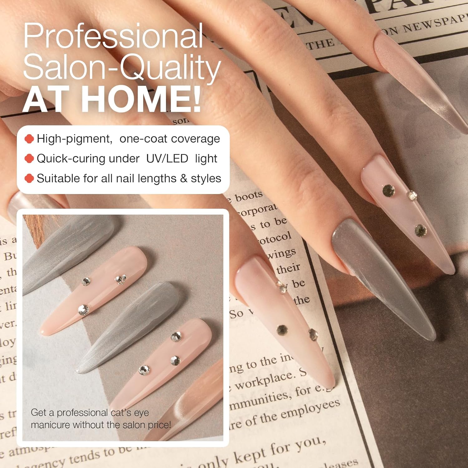 - Easy to Apply: Our gel polish glides on smoothly, providing even coverage and a flawless, glossy finish. Itâs perfect for both beginners and professionals looking to create perfect cat-eye nail art at home.