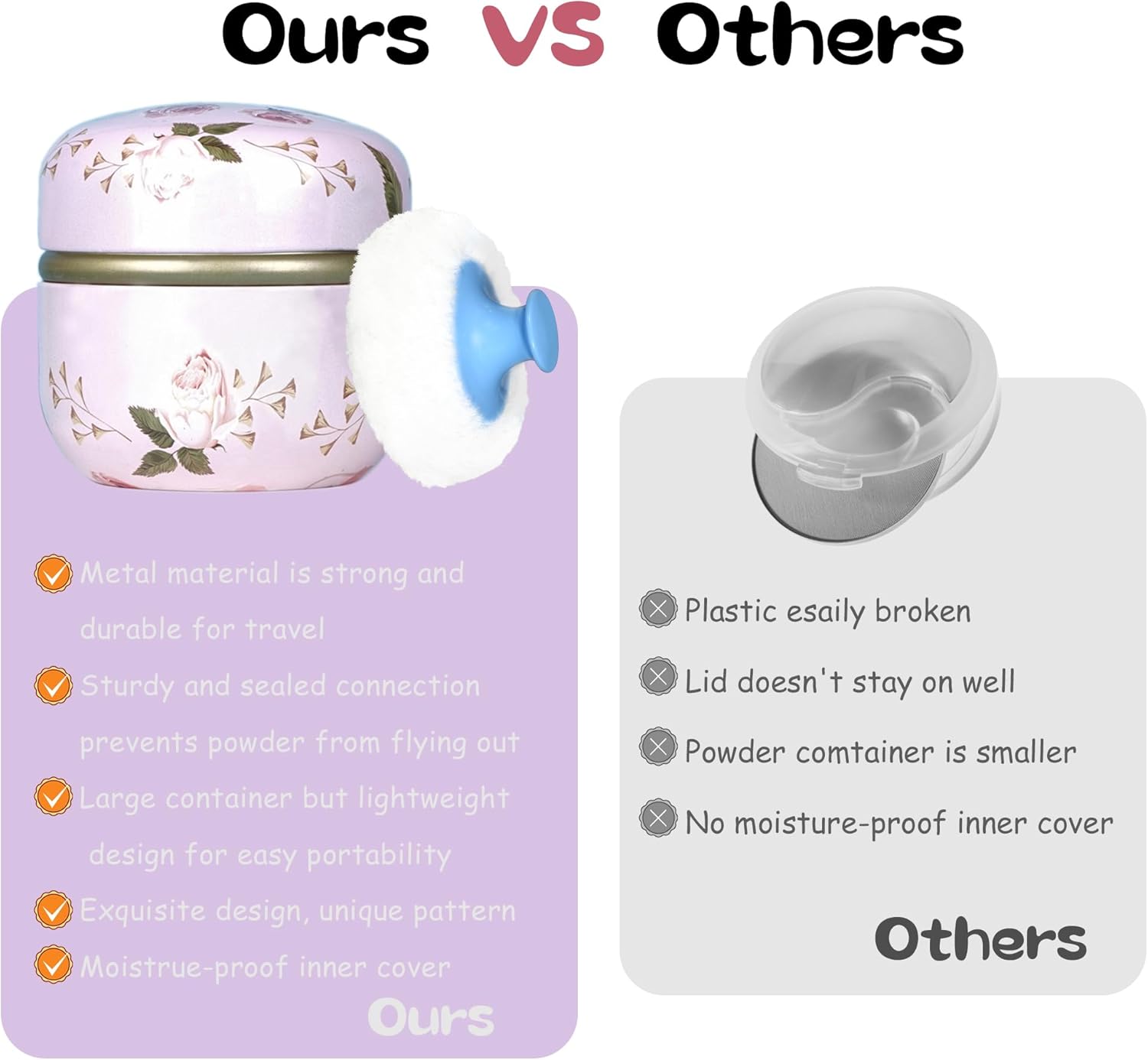 WEMEGA Body Powder Case with Powder Puff Powder Container Tea Box for Baby and Women Powder Puff and Powder Case for Travel (Rose1)