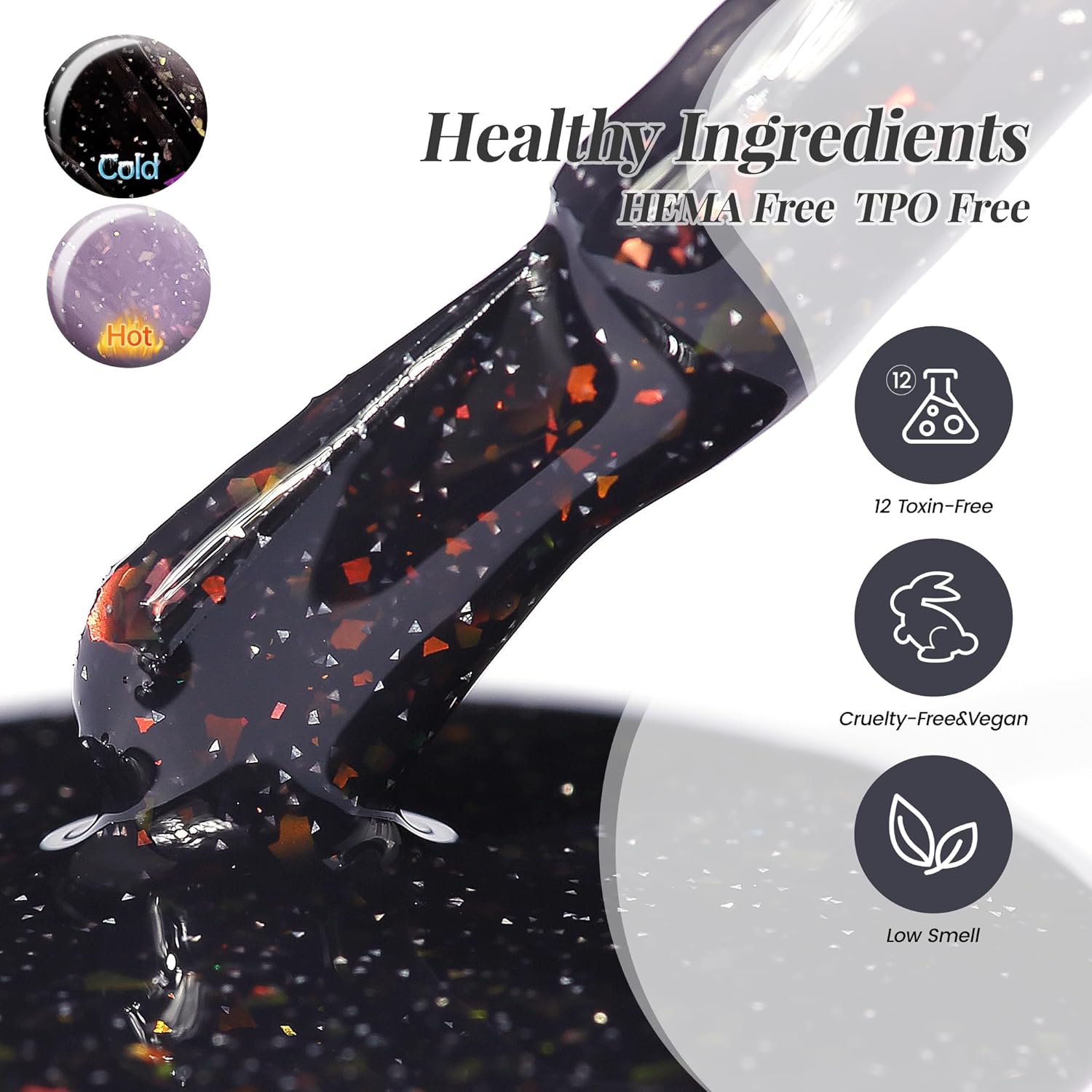 - HEMA-free and TPO-free:The gel is free of HEMA and TPO in an effort to provide users with healthier, safer and more secure gel polish products.When used in the correct process, it will last until at least 28 days or more12 non-toxic ingredients, safe and low odor