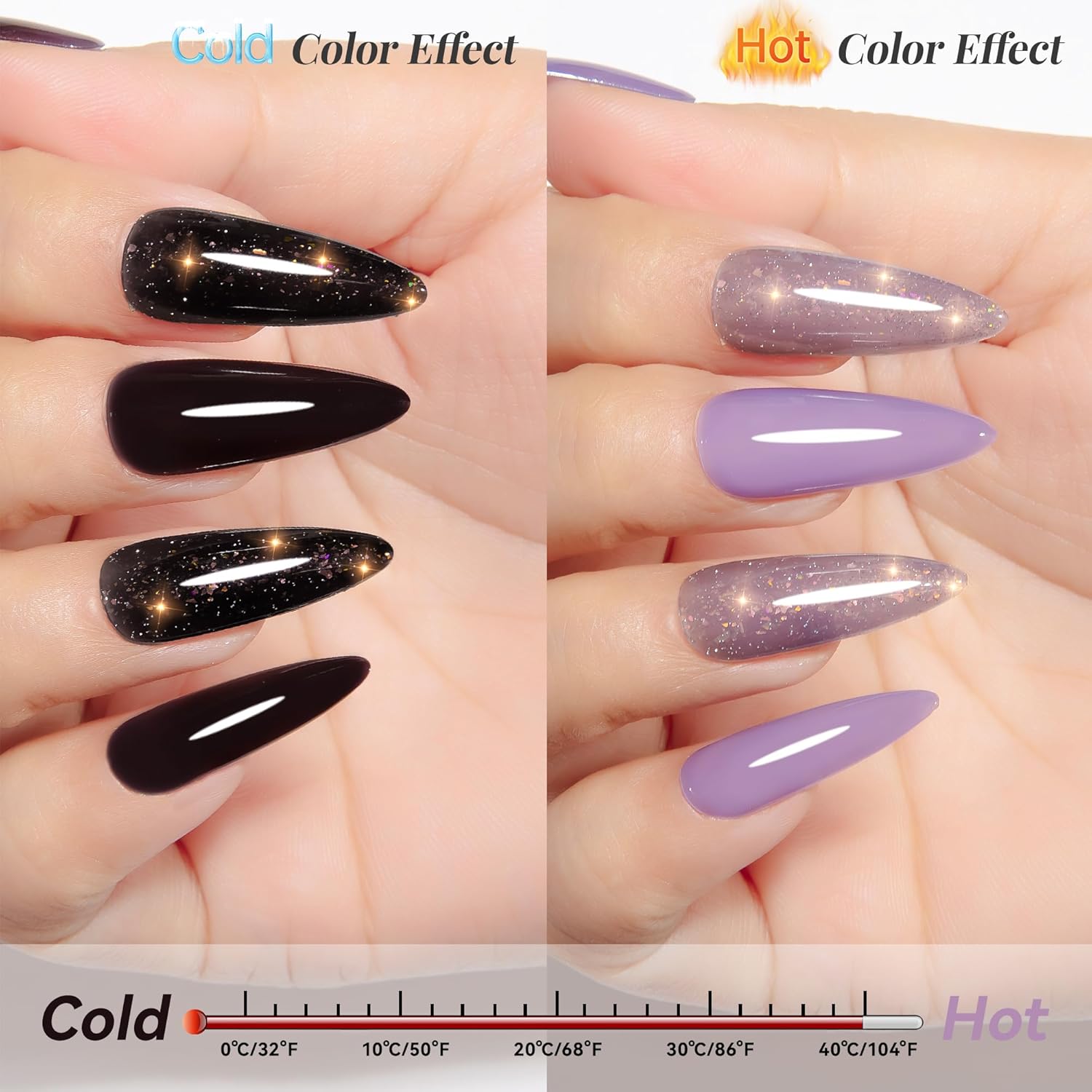 YTD Likomey Color Changing Gel Nail Polish 2 Pcs Set,15ml Grayish Purple to Black Pure Color and Brocade Glitter Kit,Fall Winter Thermal Ombre Change Colors Manicure UV Varnish,2 Pcs 15ml,WB2-05