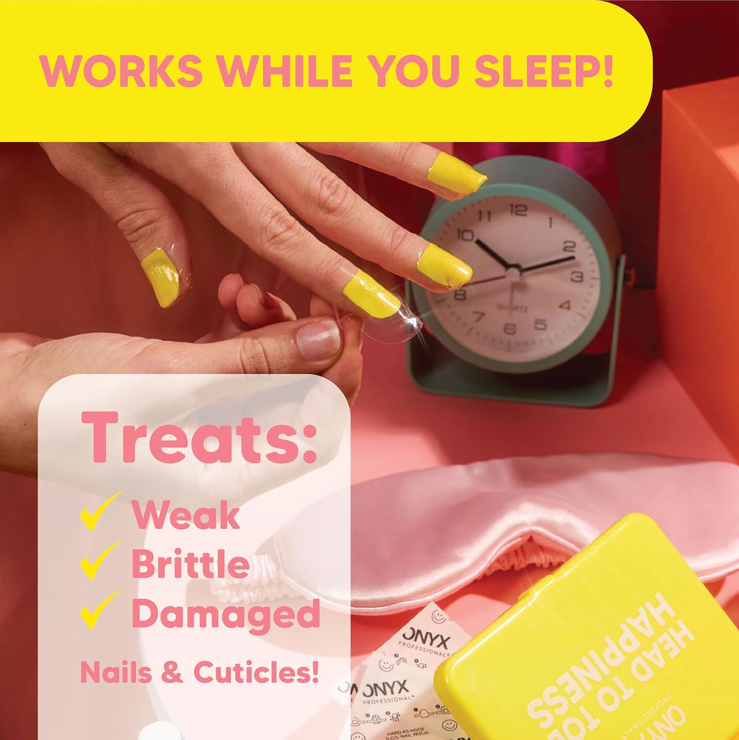 - 8-Hour Overnight Treatment: These nail patches work the overnight shift to improve the condition of your nail beds and cuticles while you sleep.