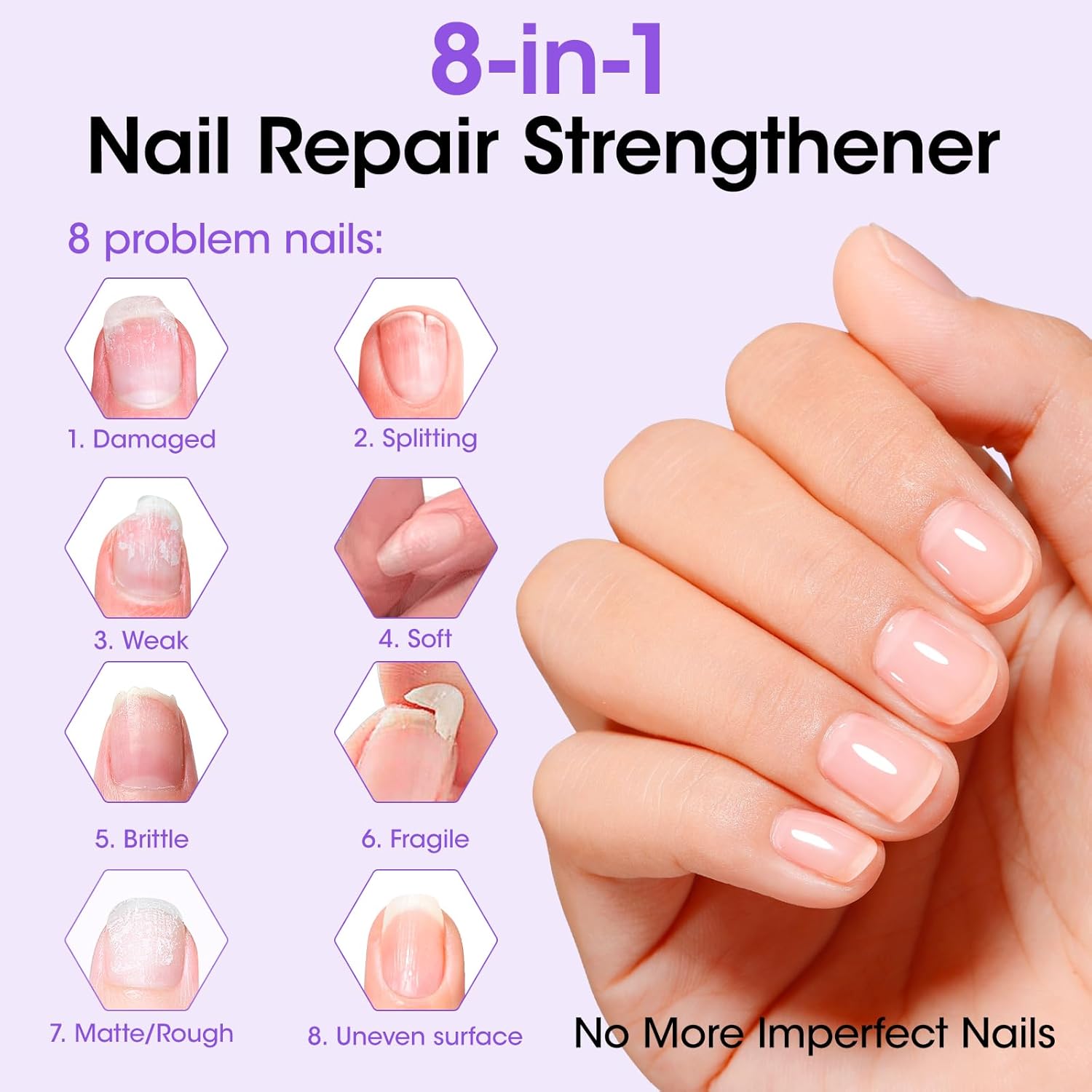 - Multifunction Natural Nail Strengthener & Growth Treatment: Our innovative nail strengthener - daily care treatment adopts multi-polymer technology to promote damaged nail repair, growth, nourishment, and strengthening nails, which is the perfect solution for damaged nails. Ideal for thin, brittle, or split nails, it leaves them with a healthy, natural glow and the confidence of salon-worthy results, and gets healthier, harder, longer nails with noticeable improvement and lasting protection in 7+ days. LAVENDER SCENTED