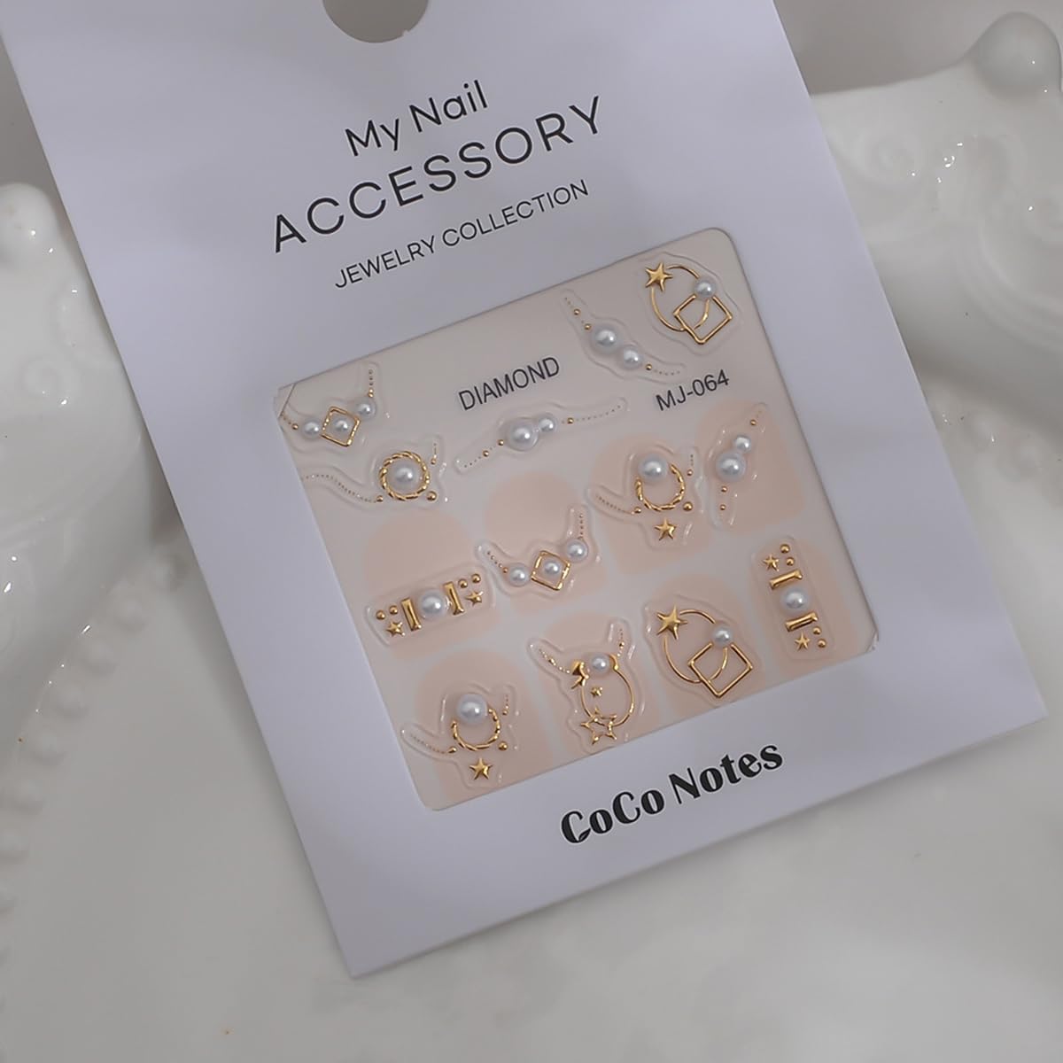 - Package: You will receive 1 sheets of pearl nail decals with gold accent.Show off your festive spirit with these eye-catching stickers,adding a trendy and celebratory touch to your nails this season