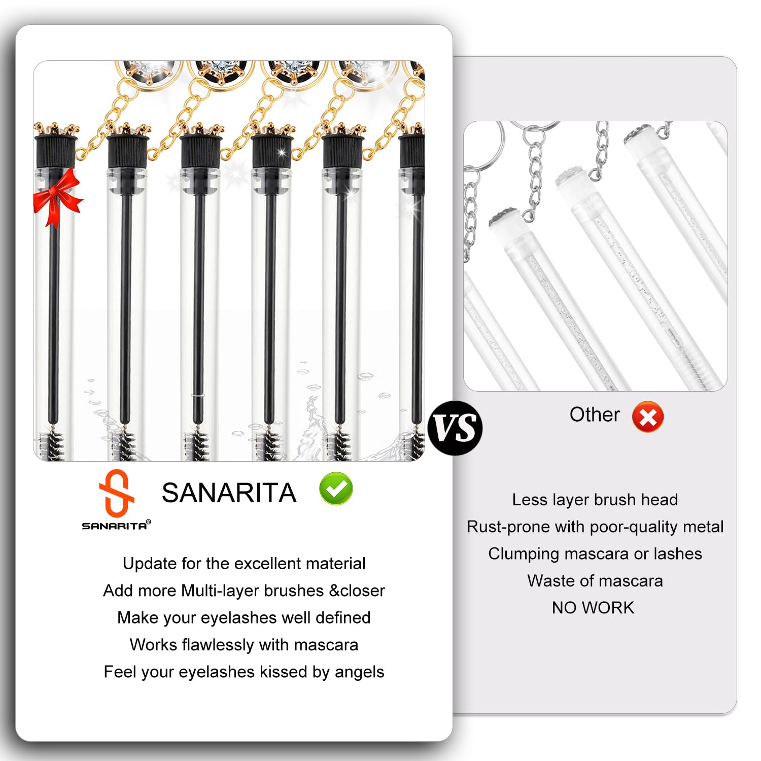 - Unique Design: With our eye-catching diamond detailing and practical design, our mascara brush set is not only functional but also a stylish accessory that will impress those around you. Whether you're at a party, on a date, or simply out with friends, our mascara brush set is sure to turn heads and spark conversations. Get ready to stand out and shine with our innovative beauty essential!