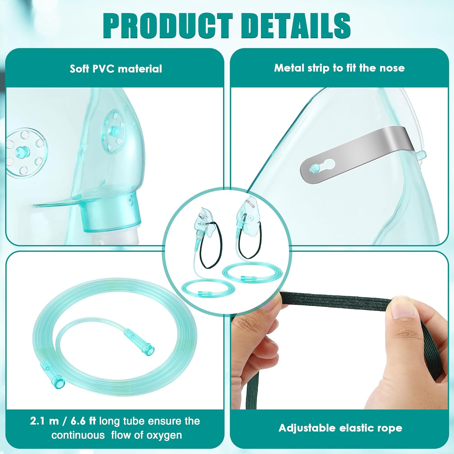 - Thoughtful Design: The oxygen mask for adult comes with an adjustable elastic headband that suits different head sizes, ensuring a safe, comfortable fit without slipping. It is further enhanced by a malleable nose clip that allows for precise adjustment of the nose profile, proper sealing to ensure optimal oxygen delivery, and a 7 foot anti kinking tube that allows for barrier free movement and consistent oxygen flow; This feature also helps prevent oxygen leaks, maximizing efficiency