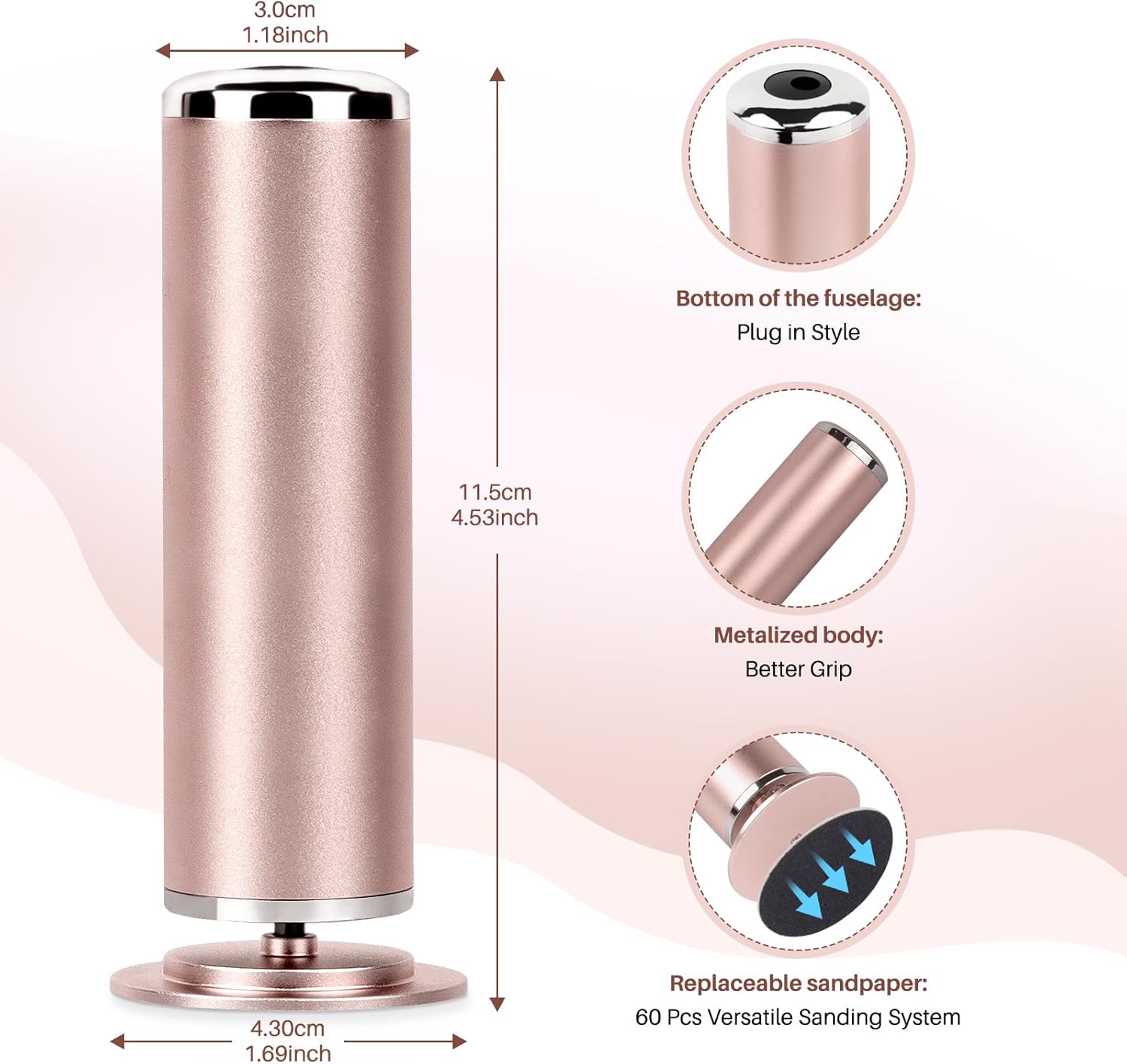 Electric Foot File Remover Callus: Profesional Pedicure Tool for Callus Remover - Adjustable Speed Feet File Grinder with 60 Pcs Replacement Sandpaper Disk for Skin and Calluses(Gold)