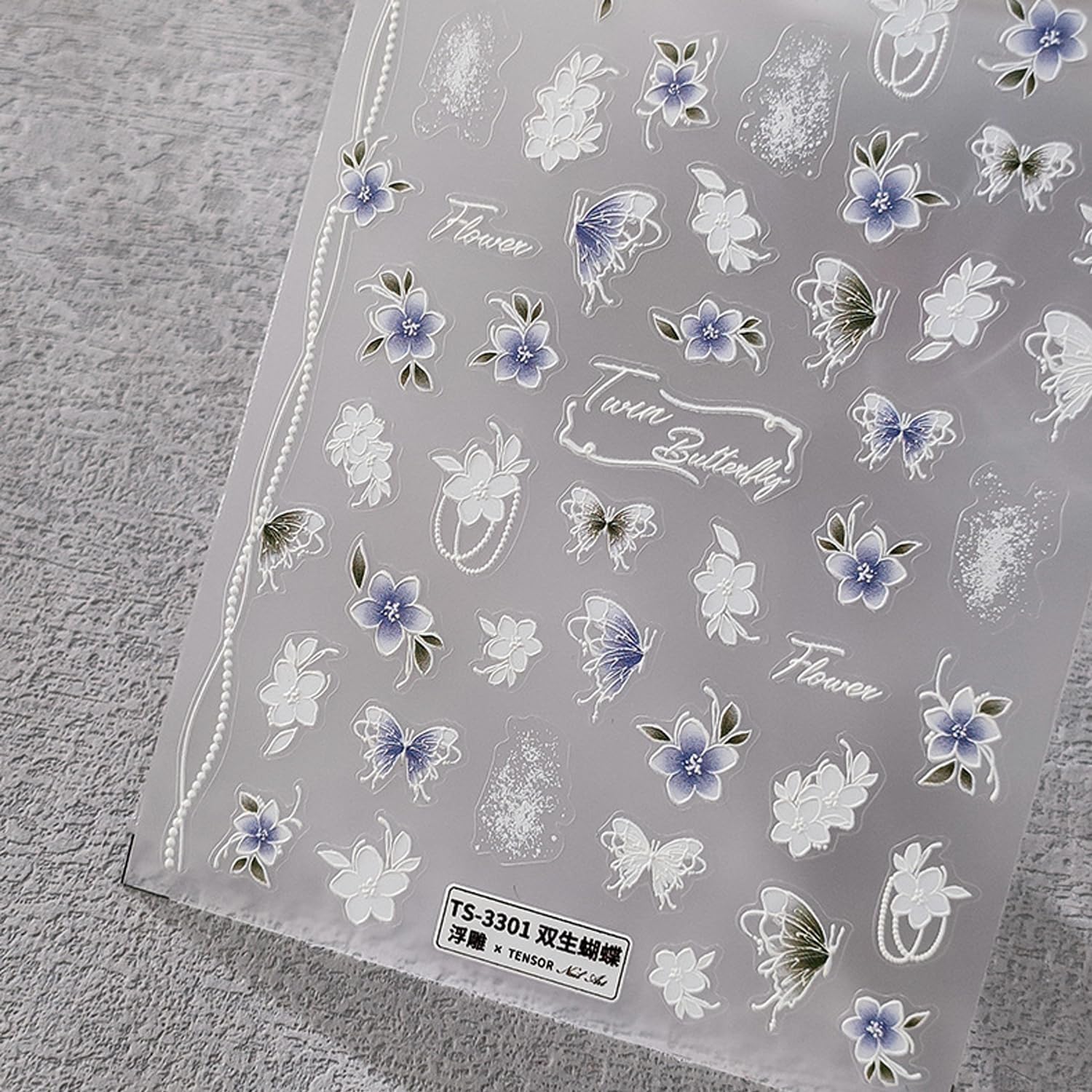 - Attractive Floral Nail Decals: 1 sheets of 5D embossing flower nail stickers, give you an advanced exquisite feeling. Floral butterfly elements nail decals, cute and beautiful carving patterns designs, suitable for your spring summer nail decorations