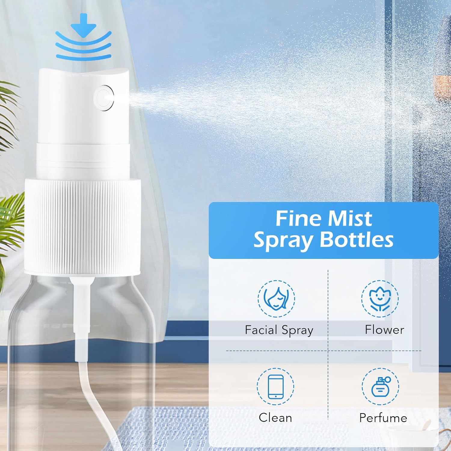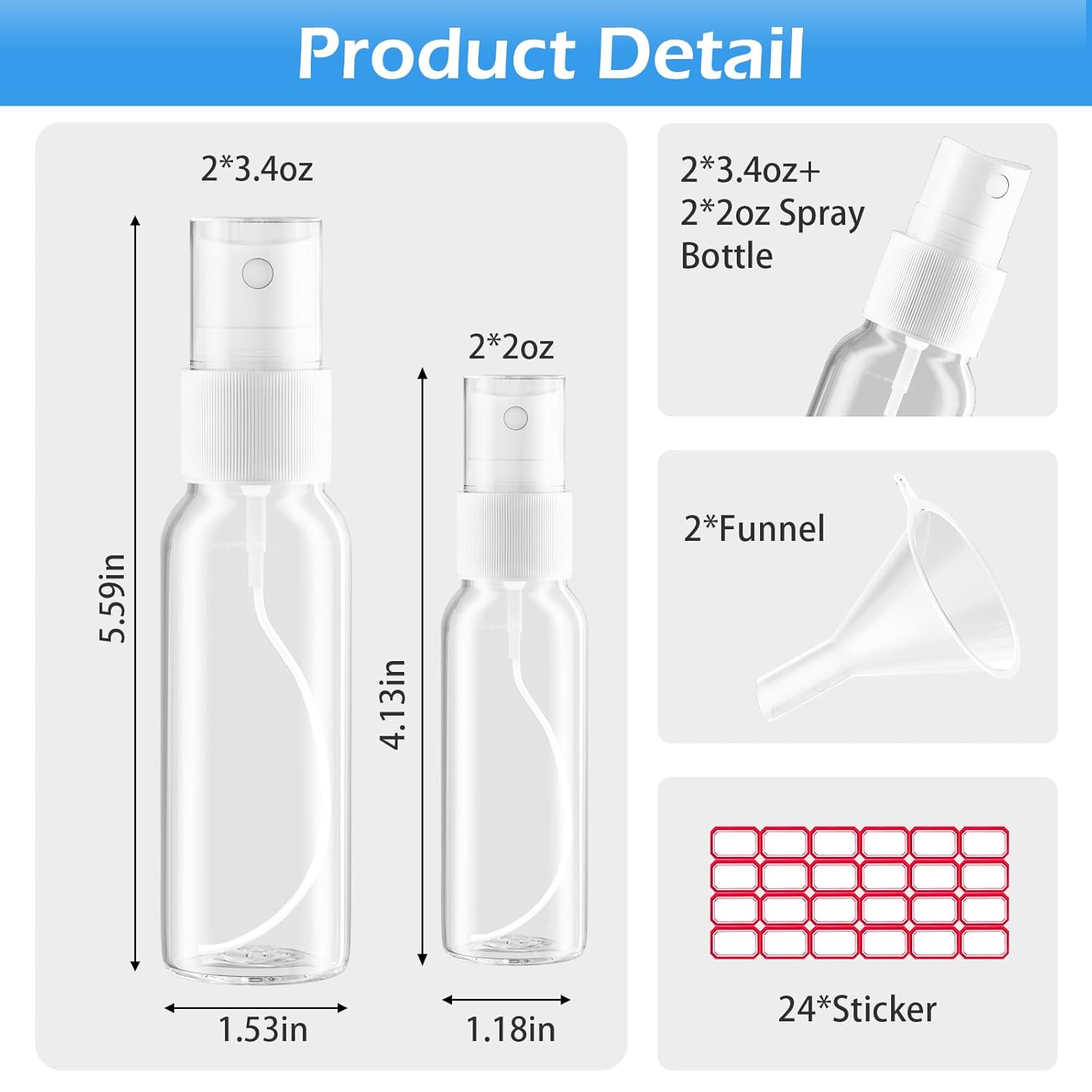 Spray Bottles, 2oz/50ml, 3.4oz/100ml Clear Empty Fine Mist Plastic Mini Travel Bottle Set, Small Refillable Liquid Containers with 2pcs Funnels and 24pcs Labels (4 Pack)