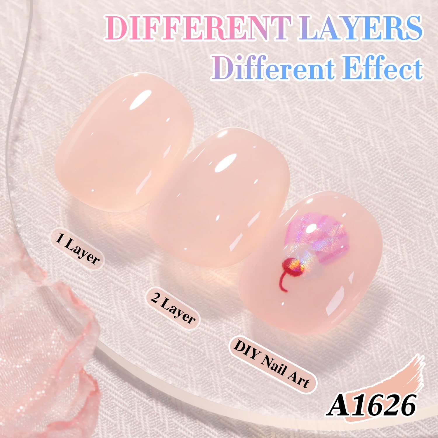 Double Rhythm 0.50 OZ Translucent Gel Polish Same Color Same Bottle Sheer Pastel Neutral Natural Milky 15 ML Jelly UV Nail Art DIY at Home (Nude Pink-A1626)