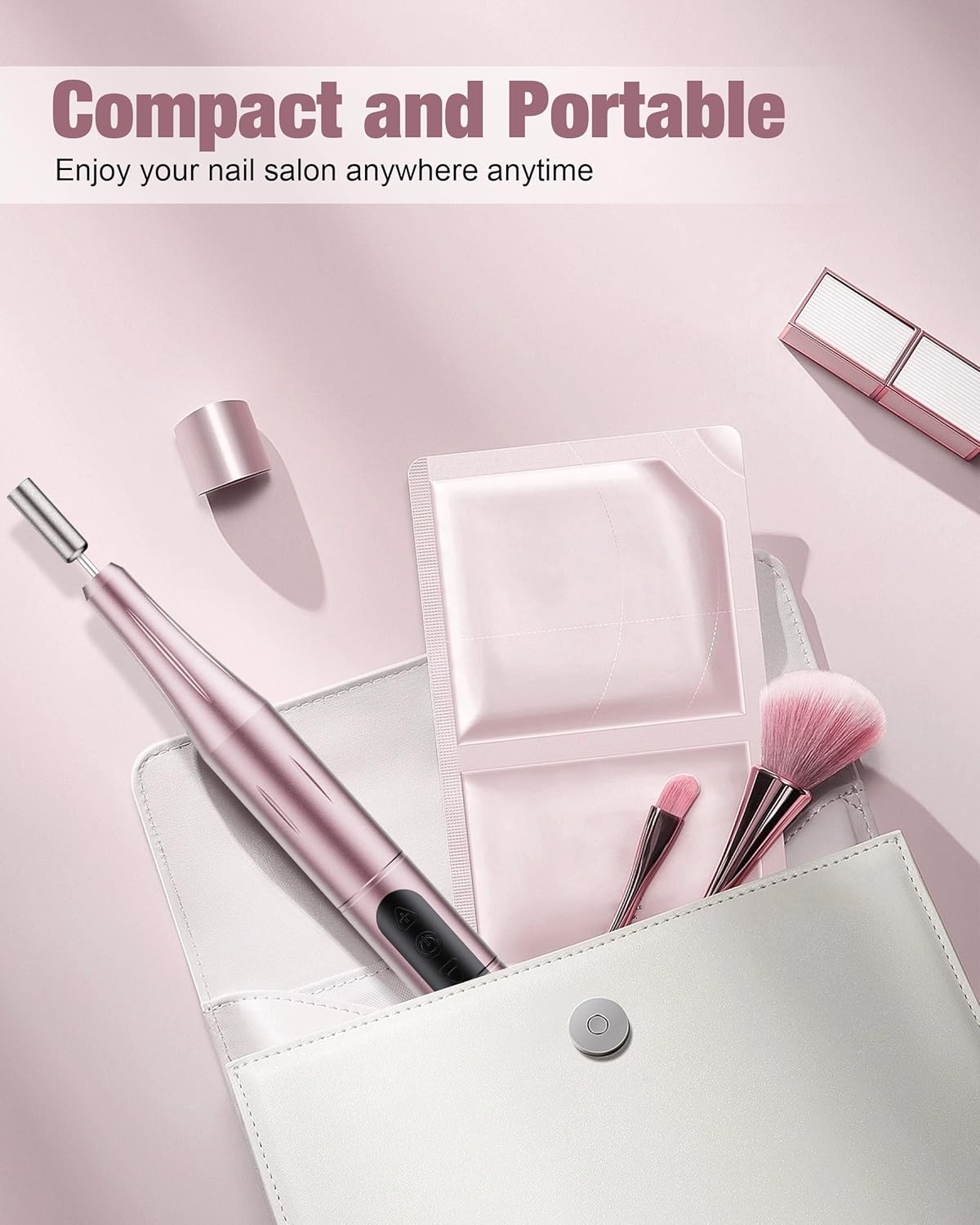 - Say goodbye to messy cords ! Our cordless nail drill is lightweight at only 0.2 lbs, making it easy to use and carry with you wherever you go. Its pen-shaped design also makes it comfortable to hold and use, friendly for beginners!