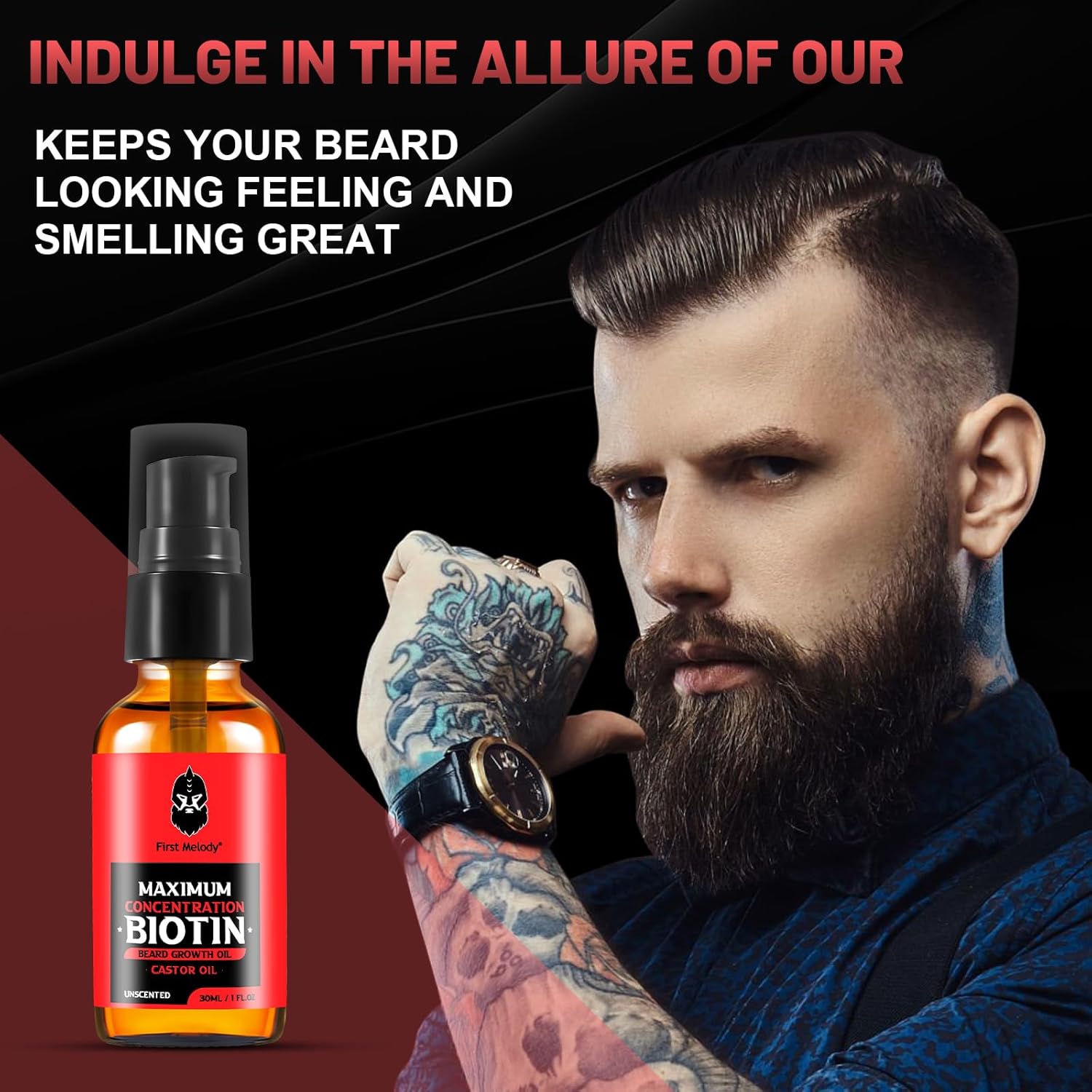 - 【MAXIMUM CONCENTRATION BIOTIN BEARD OIL】 Our beard oil is specifically formulated to promote beard growth and soften your beard. Biotin, one of the key ingredients, helps strengthen hair follicles, promoting healthy beard growth. As a topical application, biotin nourishes your hair follicles and prevents shedding while revitalizing and improving the appearance of your weak and damaged hair
