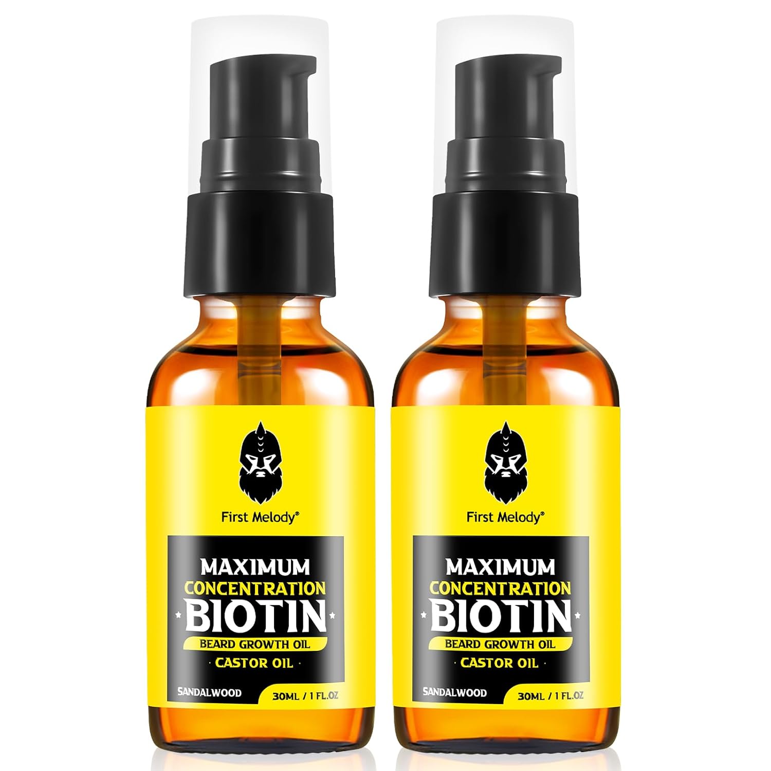 Beard Oil,Maximun Thickening Biotin, with Castor Oil and Argan & Jojoba Oils, Promotes Beard Growth, Styles, Strengthens & Softens Beards & Mustaches,1 Ounce*2(2 Pack)