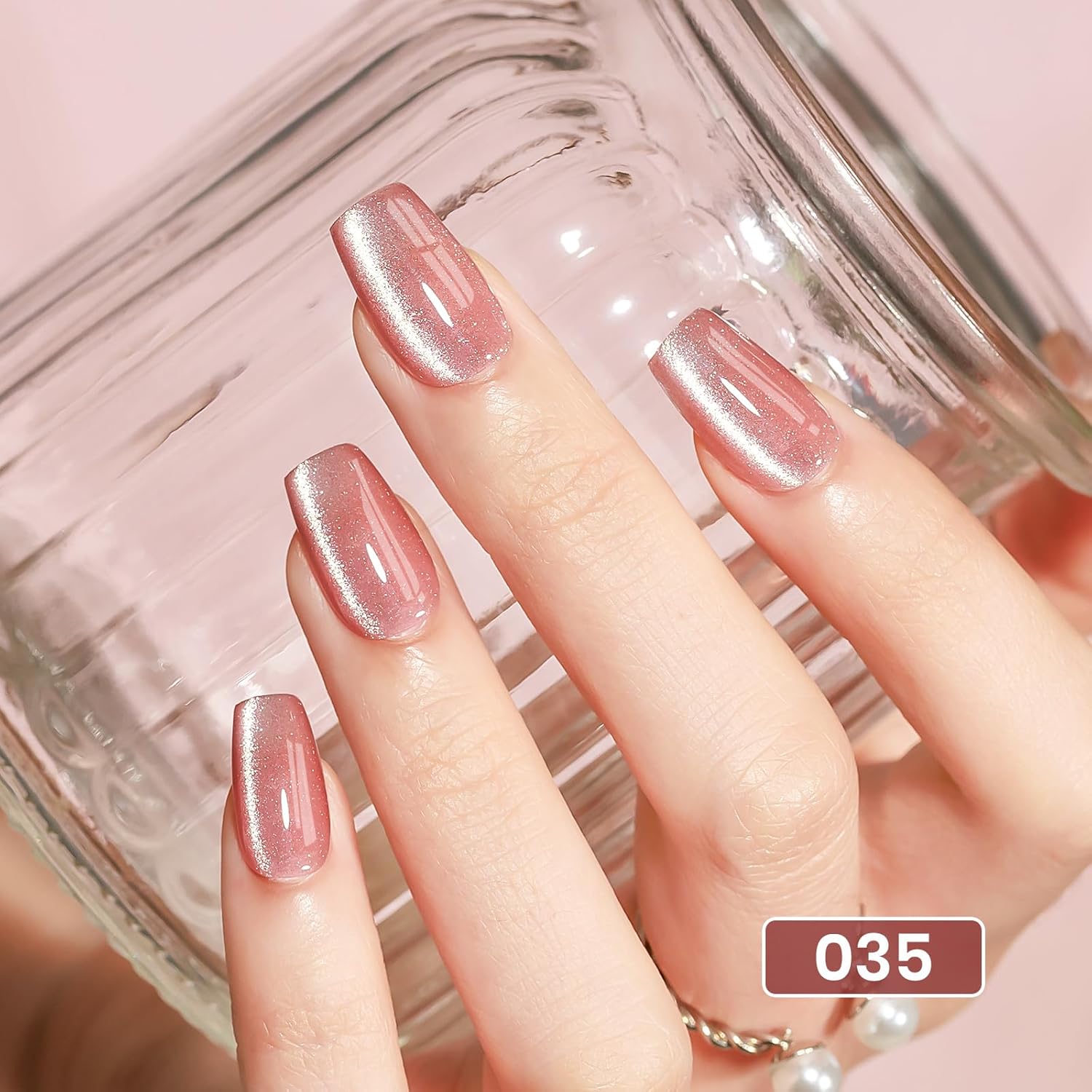- Smoothie Cat Eye Gel Polish: 1*15ml(0.5fl oz) light pink cat eye gel nail polish with 1PC magnetic stick. Mixed with smoothie magnetic glitter, it's perfect for making a statement