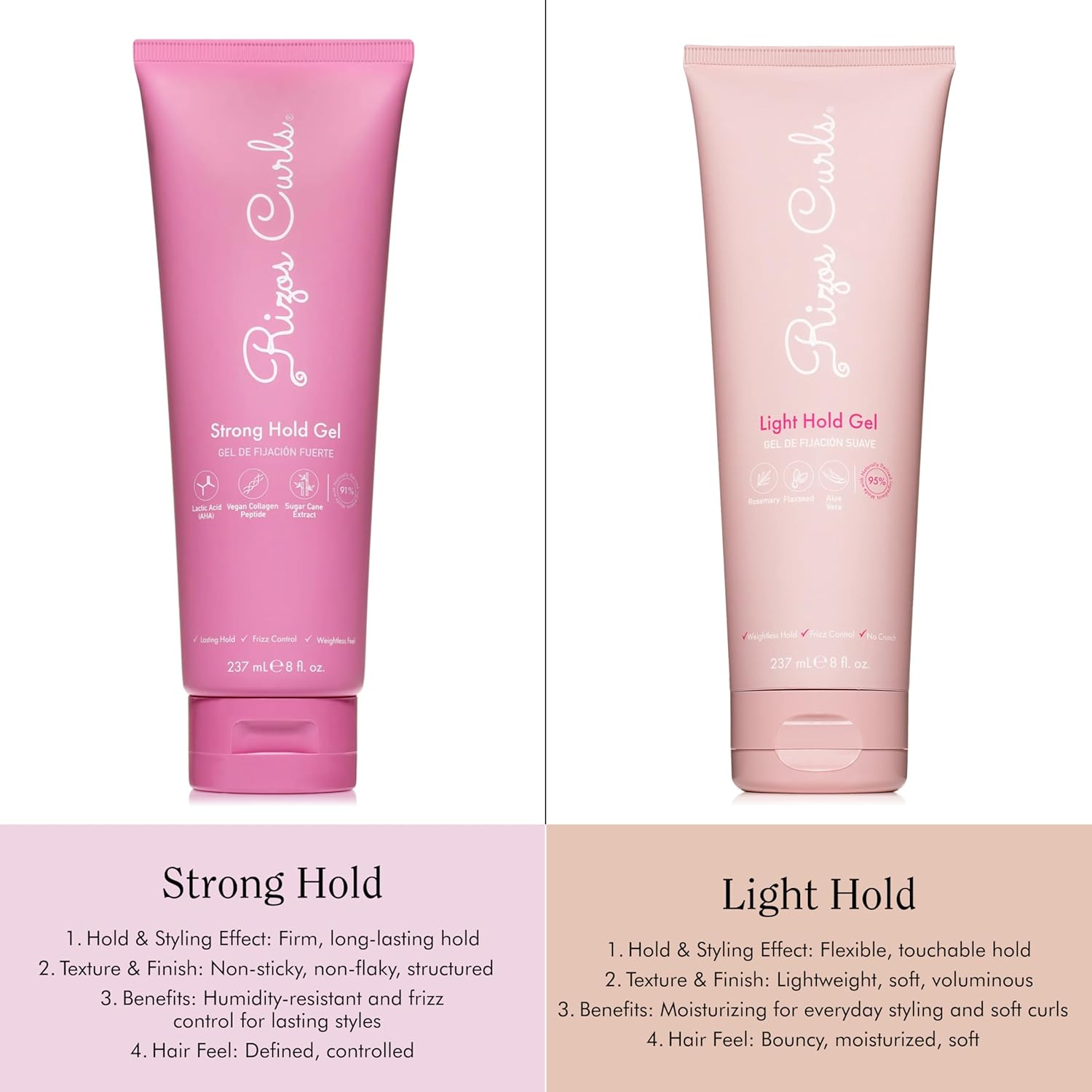 Rizos Curls Strong Hold Gel - Long-Lasting, Flake-Free Gel for Curly, Coily, and Wavy Hair, Frizz Control, Curl Definition & Shine, Vegan Collagen Peptides & Sugar Cane Extract, 8oz
