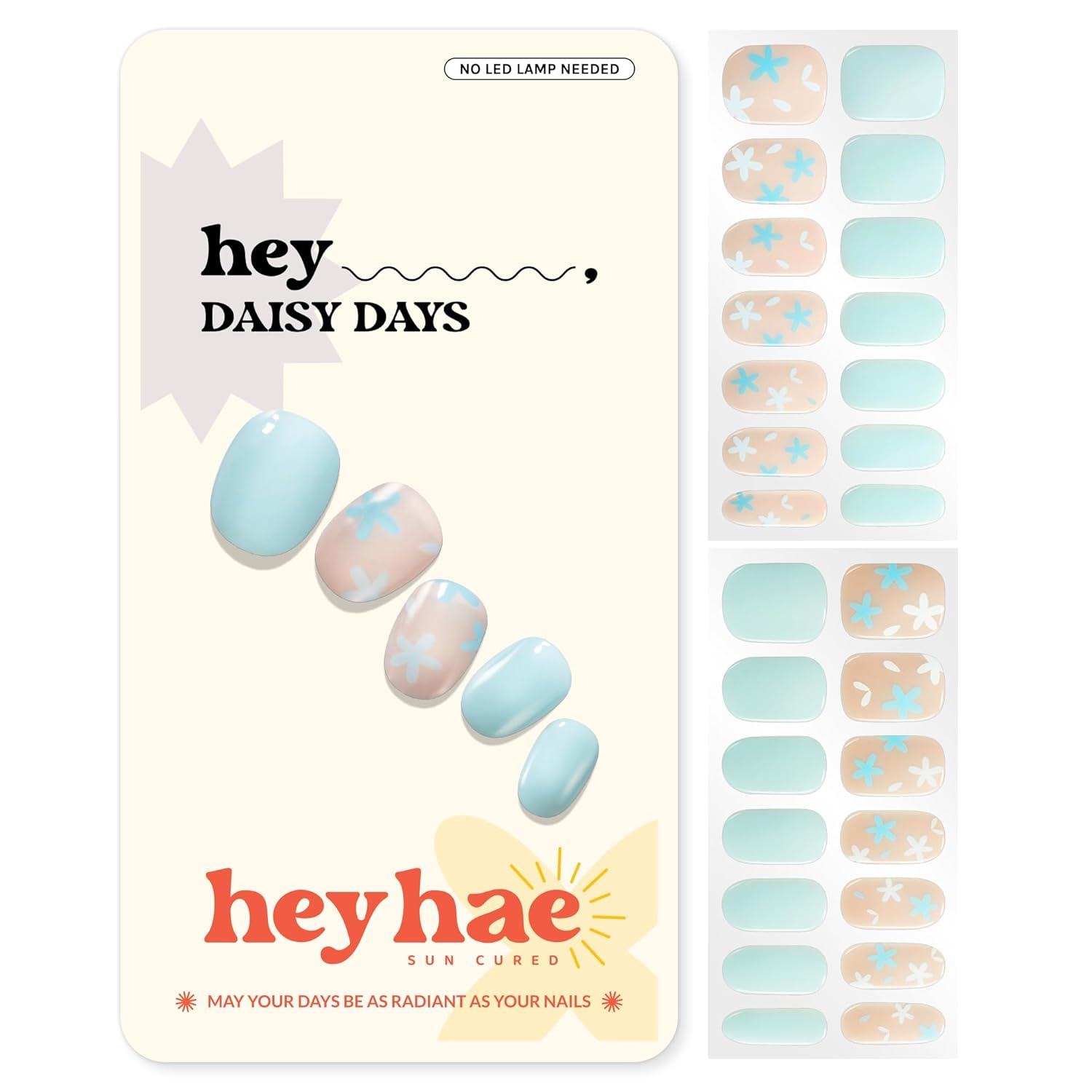 - Simple and fast cure! NO LED Lamp needed! Sun-cured Gel Nails - Simply let it cure by itself under the sunlight (UV Index 3+). **Curing time under sunlight can vary depending on various factors such as weather conditions, environmental factors, and humidity levels. No natural sunlight? No worries. Cure it under UV/LED lamp just for 5 seconds!