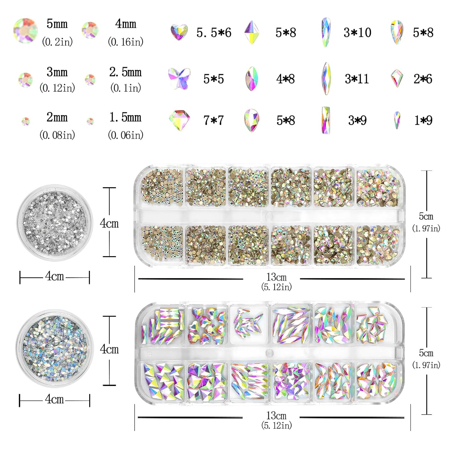 Nail Art Rhinestones Flatback Rhinestones Nail Charms Fine Glitter Supplies Mixed AB Crystals Gems Glitter Powder Luxury Design Jewelry Accessories for Women Manicure Decorations.