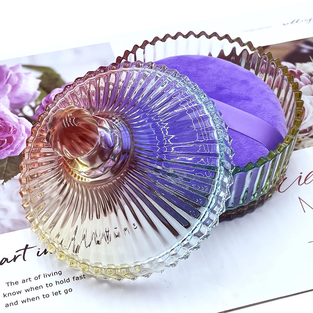 - Decorative Glass Powder Jar:The powder puff jar is made of high-quality glass, which is thick and sturdy. The design is elegant and luxurious for long-lasting beauty, making a instant décor upgrade for your dressing table, bathroom,nurseries, or vintage-themed rooms.