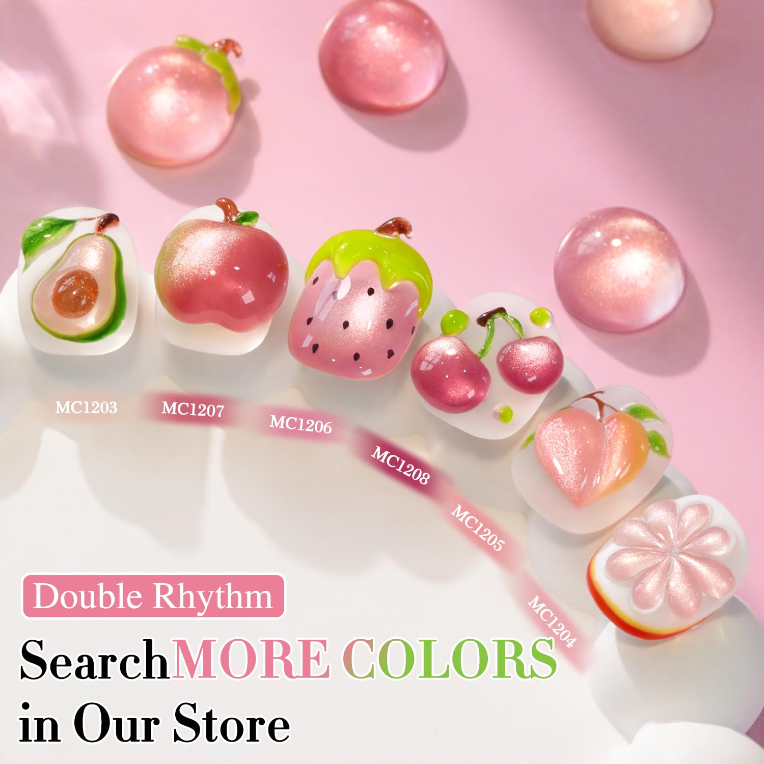 Double Rhythm 0.5 OZ Cat Eye Gel Polish with Magnet 15ML Holographic Glitter Shimmer Translucent Jelly Color Magnetic Nail Polish Salon DIY at Home (Fruit Nude Pink-MC1204)