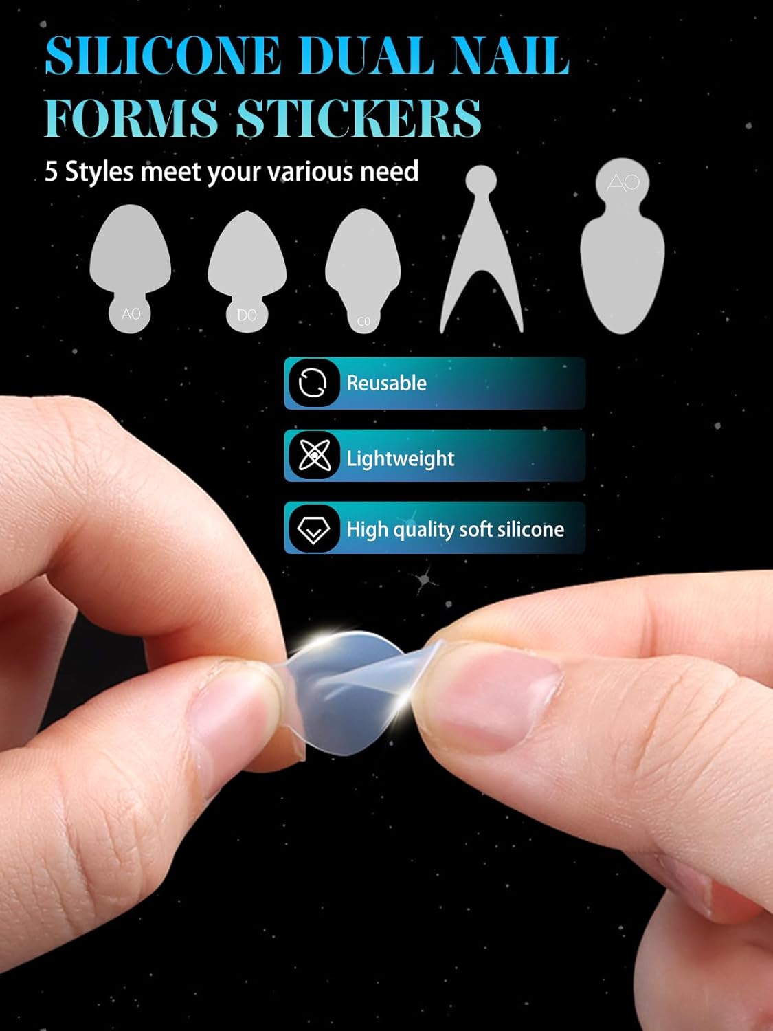 - 【Dual Nail Forms Set】288PCS nail molds and 72pcs/6 sheets duet system dual form stickers that are used together with poly nail tips, which can quickly create French nail art extension design, DIY your desired mixed color and pattern nail tips.