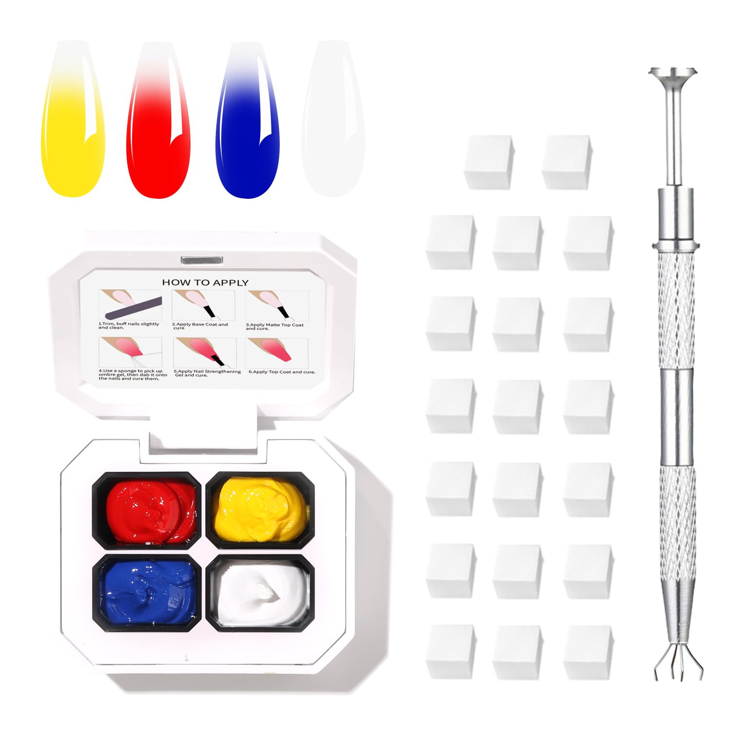 - [Easy DIY operation at home]:With sponge tools to simplify gradient techniques, beginners can quickly get started use pat gel polish; The ombre gel polish is malleable and can be cured with UV/LED lamps at home to complete long-lasting pat paint for nails, saving the cost and time of nail salon.