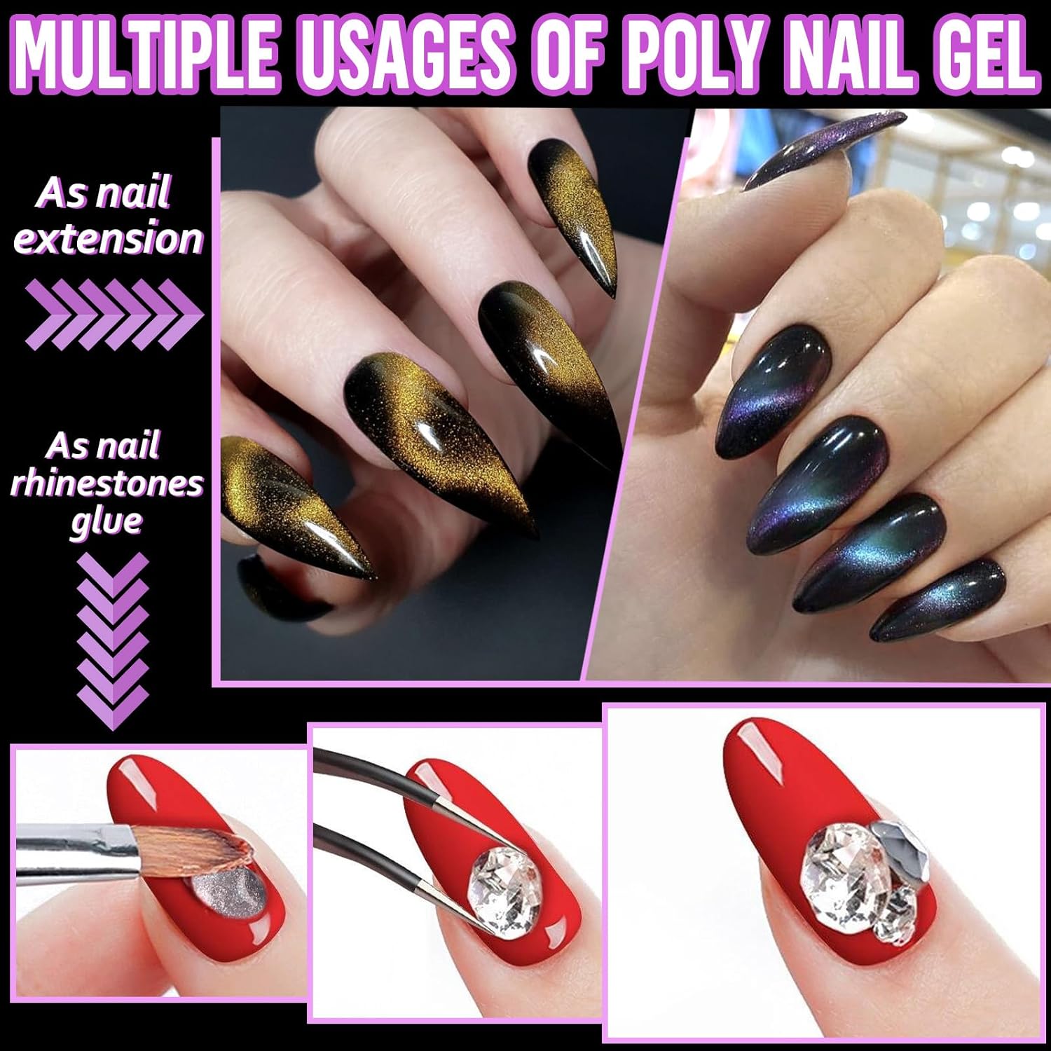 - 【Wide Application & High Gloss of Poly Gel Kit】You can use cat eye poly nail gel kit for poly gel nail, nail sculpting, nail art with rhinestone and other artistic creations of the nail extension gel kit to make you stand out from the crowd by this poly gel nail kits. Magnetic poly gel flash colors in poly gel nail kit, this poly gel extension nail kit is the perfect gift for all nail lovers with an even better color system.