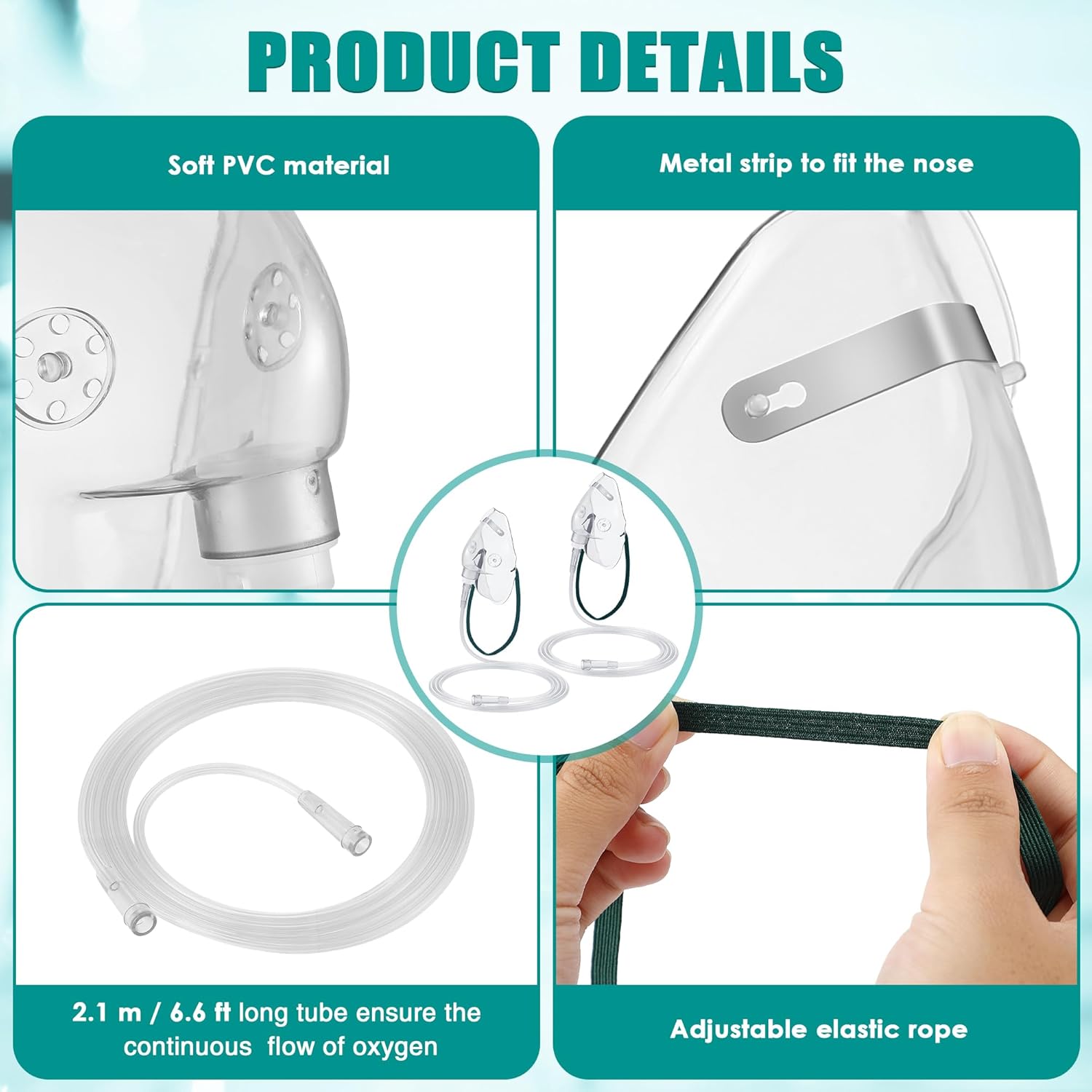 - Versatile Compatibility & Secure Fit: Engineered with an adjustable elastic head strap and customizable nose clip, this oxygen face mask accommodates diverse head sizes while maintaining airtight sealing for reliable oxygen delivery. The oxygen mask with tubing includes a 6.6 foot reinforced anti kink tube, providing ample mobility without compromising flow consistency, whether seated or resting in home environments